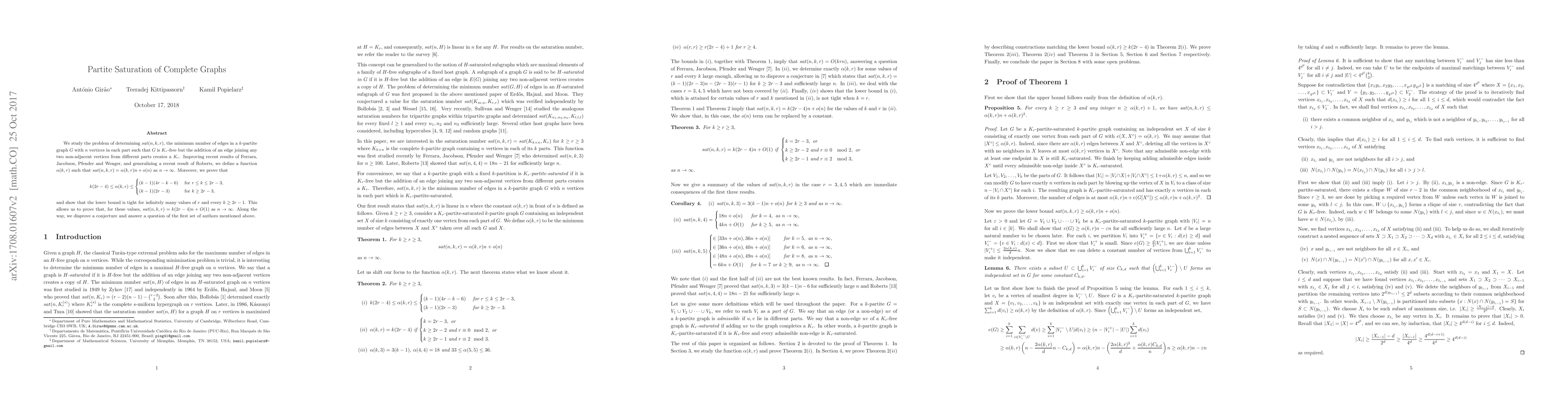 We study the problem of determining $sat(n,k,r)$, the minimum number of edges in a $k$-partite graph $G$ with $n$ vertices in each part such that $G$ is $K_r$-free but the addition of an edge joining any two non-adjacent vertices from different parts creates a $K_r$. Improving recent results of Ferrara, Jacobson, Pfender and Wenger, and generalizing a recent result of Roberts, we define a function $\alpha(k,r)$ such that $sat(n,k,r) = \alpha(k,r)n + o(n)$ as $n \rightarrow \infty$. Moreover, we prove that \[ k(2r-4) \le \alpha(k,r) \le \begin{cases} (k-1)(4r-k-6) &\text{ for }r \le k \le 2r-3, \\(k-1)(2r-3) &\text{ for }k \ge 2r-3, \end{cases} \] and show that the lower bound is tight for infinitely many values of $r$ and every $k\geq 2r-1$. This allows us to prove that, for these values, $sat(n,k,r) = k(2r-4)n + O(1)$ as $n \rightarrow \infty$. Along the way, we disprove a conjecture and answer a question of the first set of authors mentioned above.