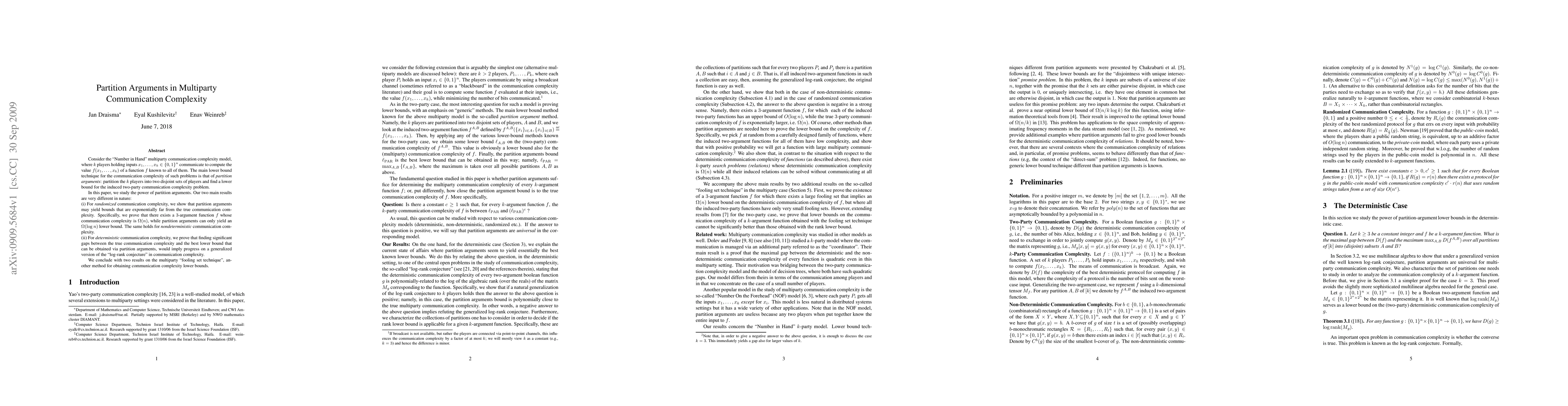 This paper investigates the effectiveness of partition arguments in determining the communication complexity in the "Number in Hand" multiparty model. It finds that partition arguments can yield exponentially weaker bounds for randomized communication complexity compared to the true complexity. For deterministic communication complexity, it suggests that significant gaps between true complexity and partition arguments' bounds imply progress on the log-rank conjecture.