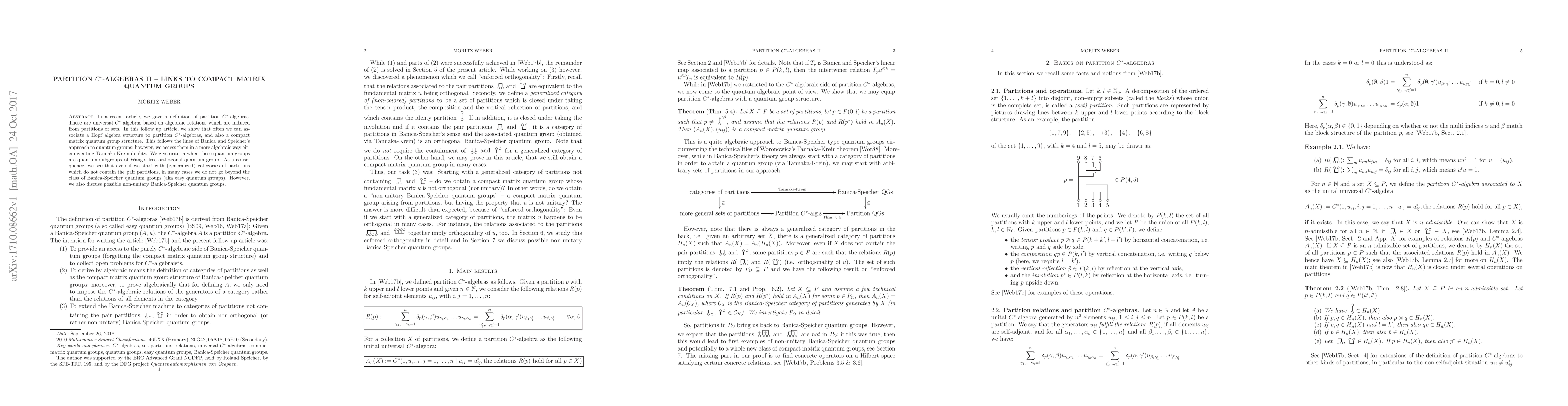 This paper associates Hopf algebra and compact matrix quantum group structures to partition C*-algebras, aligning with Banica and Speicher's quantum groups but via a more algebraic method, and explores their connections to Wang's free orthogonal quantum group and the possibility of non-unitary quantum subgroups.