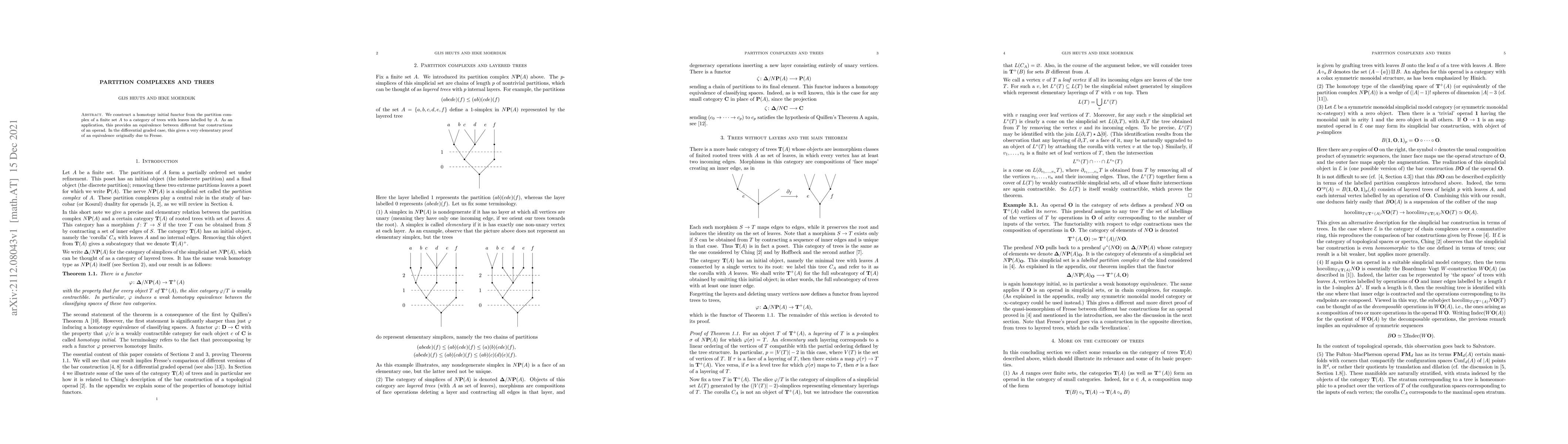 The paper establishes a homotopy initial functor from the partition complex of a finite set to a category of trees with leaves labelled by the set, providing an equivalence between different bar constructions of an operad.
