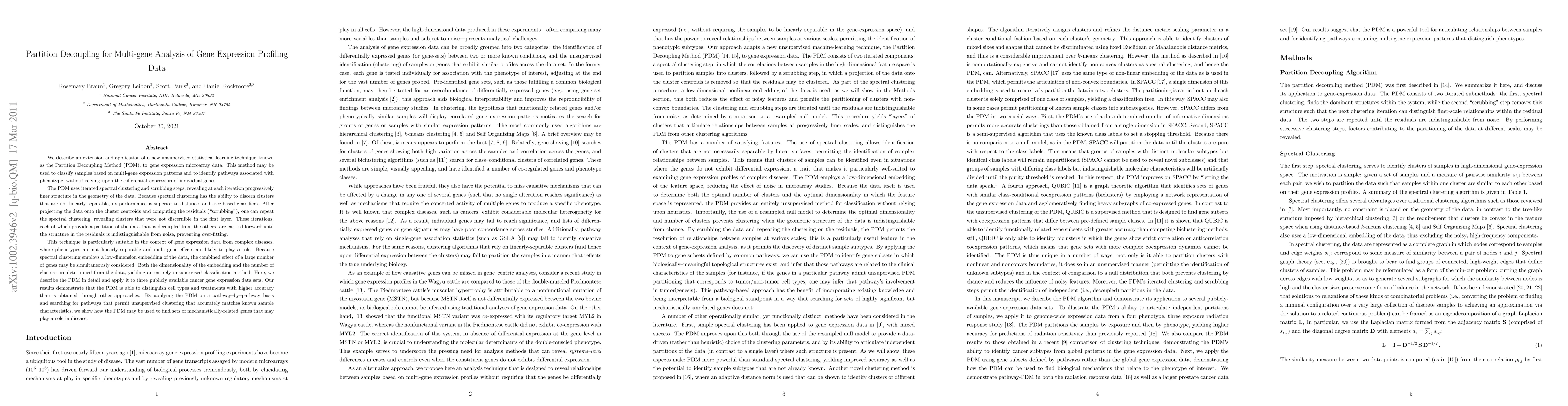 We present the extention and application of a new unsupervised statistical learning technique--the Partition Decoupling Method--to gene expression data. Because it has the ability to reveal non-linear and non-convex geometries present in the data, the PDM is an improvement over typical gene expression analysis algorithms, permitting a multi-gene analysis that can reveal phenotypic differences even when the individual genes do not exhibit differential expression. Here, we apply the PDM to publicly-available gene expression data sets, and demonstrate that we are able to identify cell types and treatments with higher accuracy than is obtained through other approaches. By applying it in a pathway-by-pathway fashion, we demonstrate how the PDM may be used to find sets of mechanistically-related genes that discriminate phenotypes.