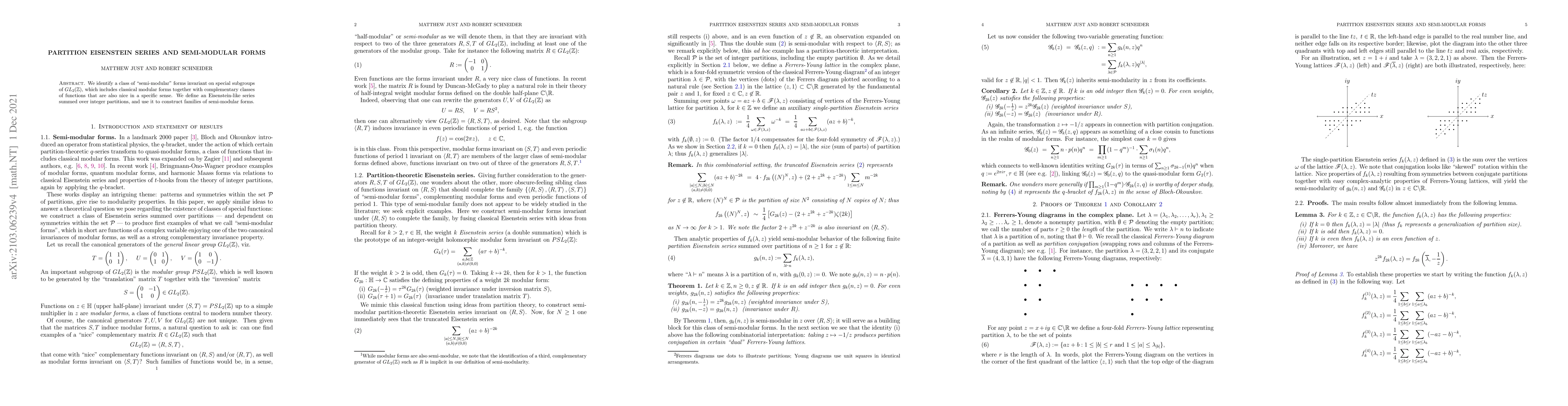 The paper identifies a new class of "semi-modular" forms that extend classical modular forms and defines an Eisenstein-like series based on integer partitions to construct these forms.