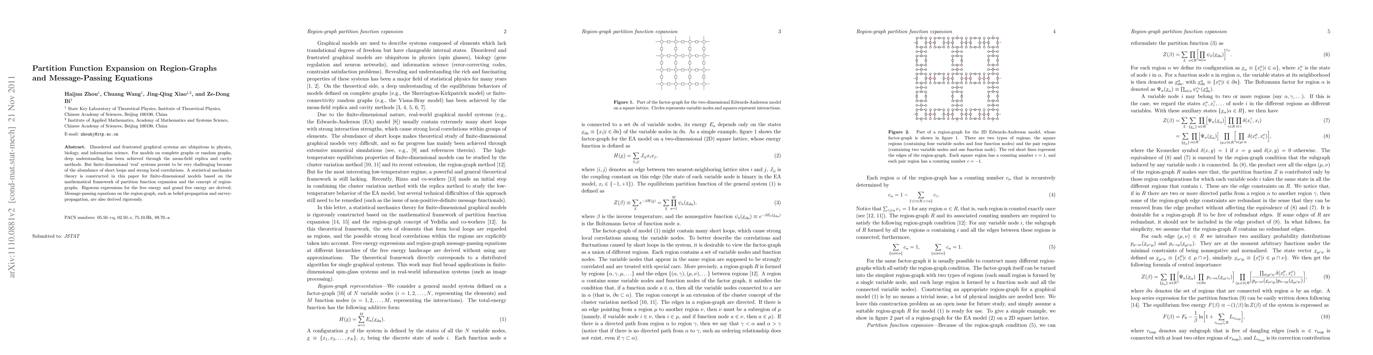 This paper develops a statistical mechanics theory for finite-dimensional disordered systems using partition function expansion and region-graphs, deriving rigorous expressions for free energy and grand free energy, along with message-passing equations like belief-propagation and survey-propagation.