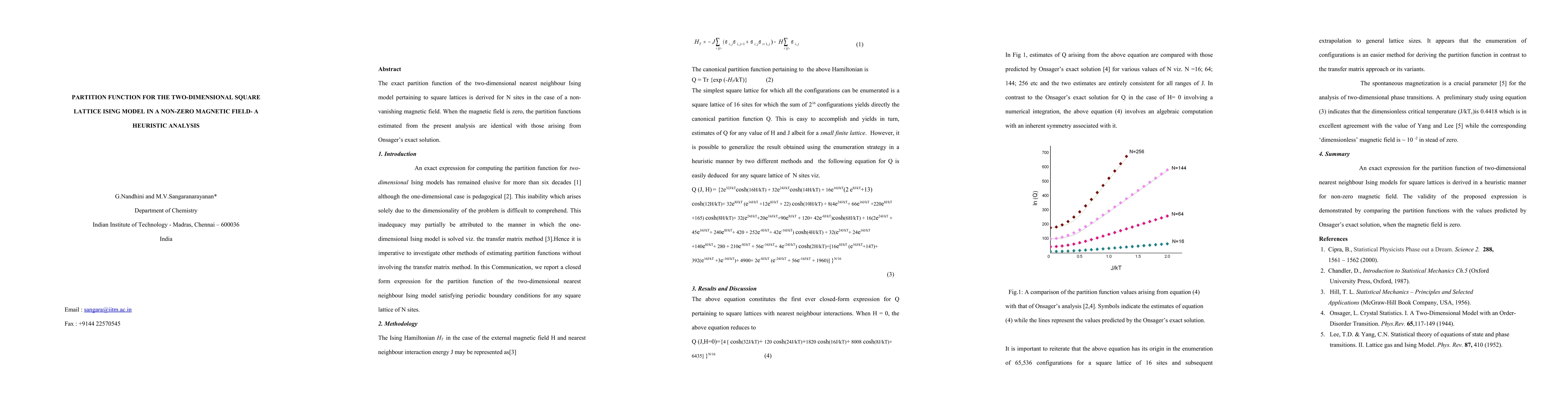 This paper derives the exact partition function for the two-dimensional square lattice Ising model with a non-zero magnetic field, showing consistency with Onsager's zero-field solution. The heuristic analysis provides a method for the non-zero magnetic field case.