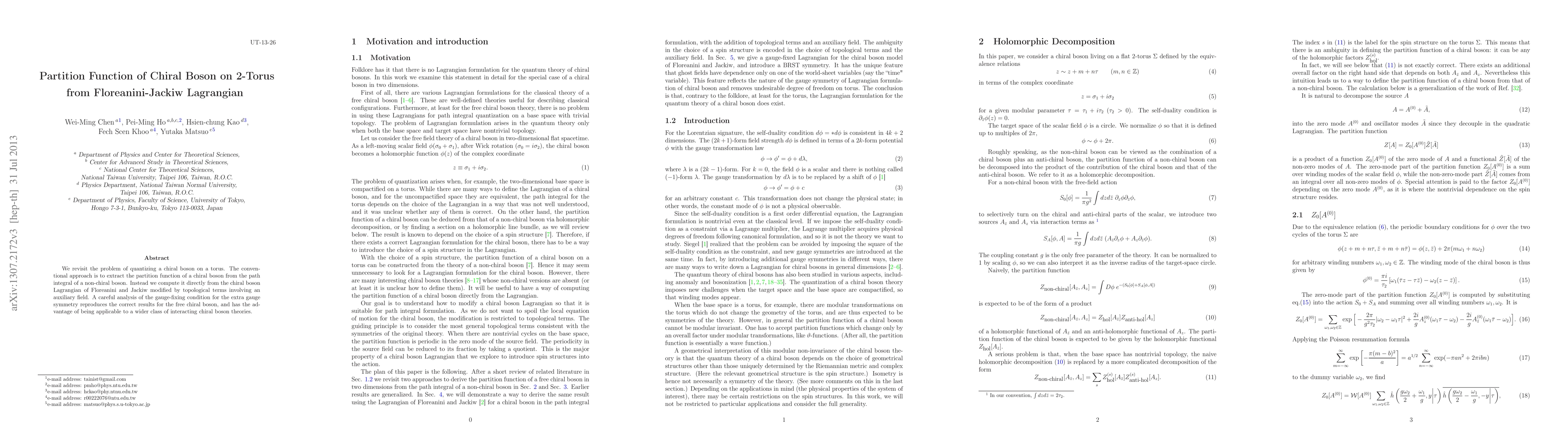 We revisit the problem of quantizing a chiral boson on a torus. The conventional approach is to extract the partition function of a chiral boson from the path integral of a non-chiral boson. Instead we compute it directly from the chiral boson Lagrangian of Floreanini and Jackiw modified by topological terms involving auxiliary fields. A careful analysis of the gauge-fixing condition for the extra gauge symmetry reproduces the correct results for the free chiral boson, and has the advantage of being applicable to a wider class of interacting chiral boson theories.