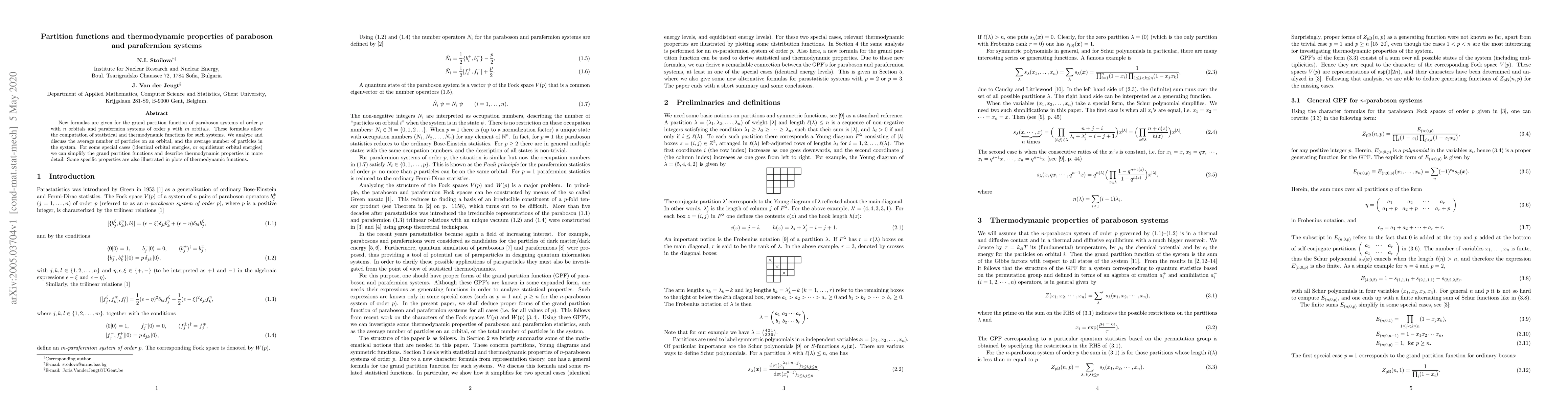 Researchers have developed new formulas to calculate thermodynamic properties for paraboson and parafermion systems, enabling the computation of statistical functions and providing insights into average particle numbers on orbitals and in the system.