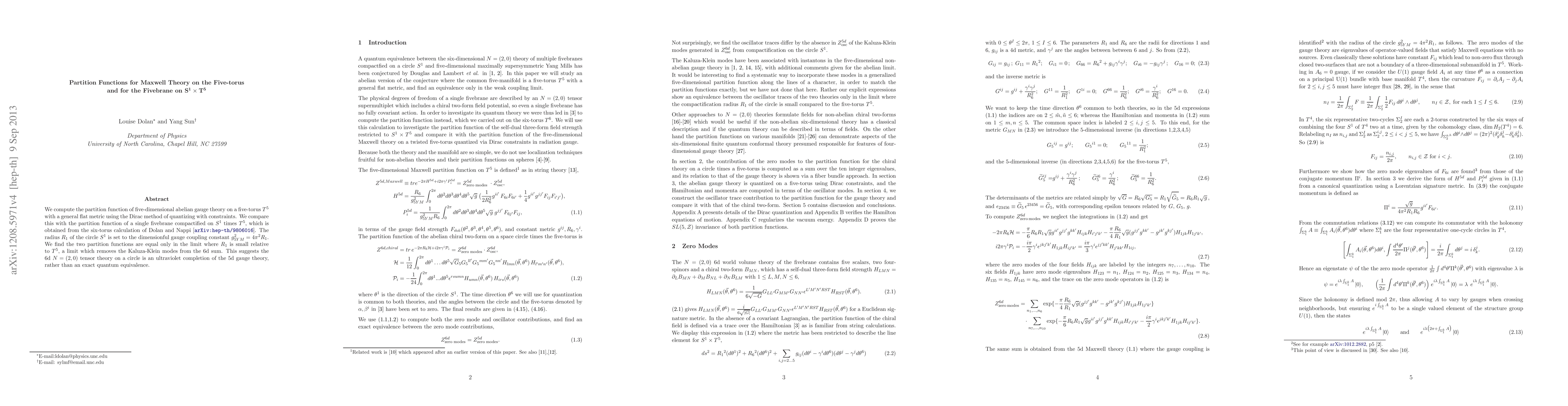 Summary: The paper calculates partition functions for five-dimensional abelian gauge theory on a five-torus and for a fivebrane on S1×T5, finding they are equal only when the radius of the circle is small. This indicates the 6d N=(2,0) tensor theory serves as an ultraviolet completion of the 5d gauge theory, not an exact equivalence.