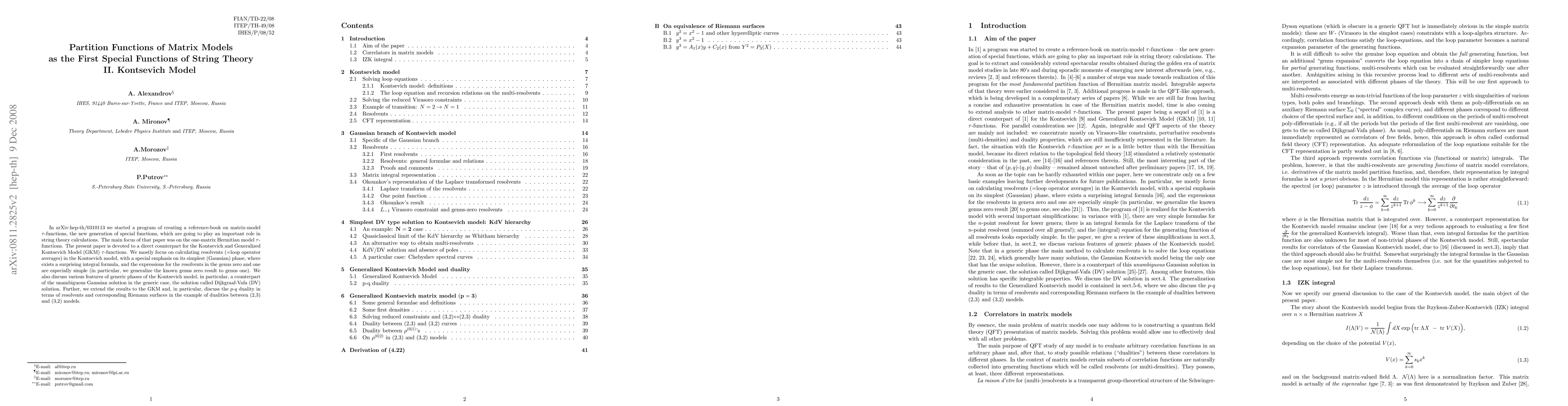 In arXiv:hep-th/0310113 we started a program of creating a reference-book on matrix-model tau-functions, the new generation of special functions, which are going to play an important role in string theory calculations. The main focus of that paper was on the one-matrix Hermitian model tau-functions. The present paper is devoted to a direct counterpart for the Kontsevich and Generalized Kontsevich Model (GKM) tau-functions. We mostly focus on calculating resolvents (=loop operator averages) in the Kontsevich model, with a special emphasis on its simplest (Gaussian) phase, where exists a surprising integral formula, and the expressions for the resolvents in the genus zero and one are especially simple (in particular, we generalize the known genus zero result to genus one). We also discuss various features of generic phases of the Kontsevich model, in particular, a counterpart of the unambiguous Gaussian solution in the generic case, the solution called Dijkgraaf-Vafa (DV) solution. Further, we extend the results to the GKM and, in particular, discuss the p-q duality in terms of resolvents and corresponding Riemann surfaces in the example of dualities between (2,3) and (3,2) models.