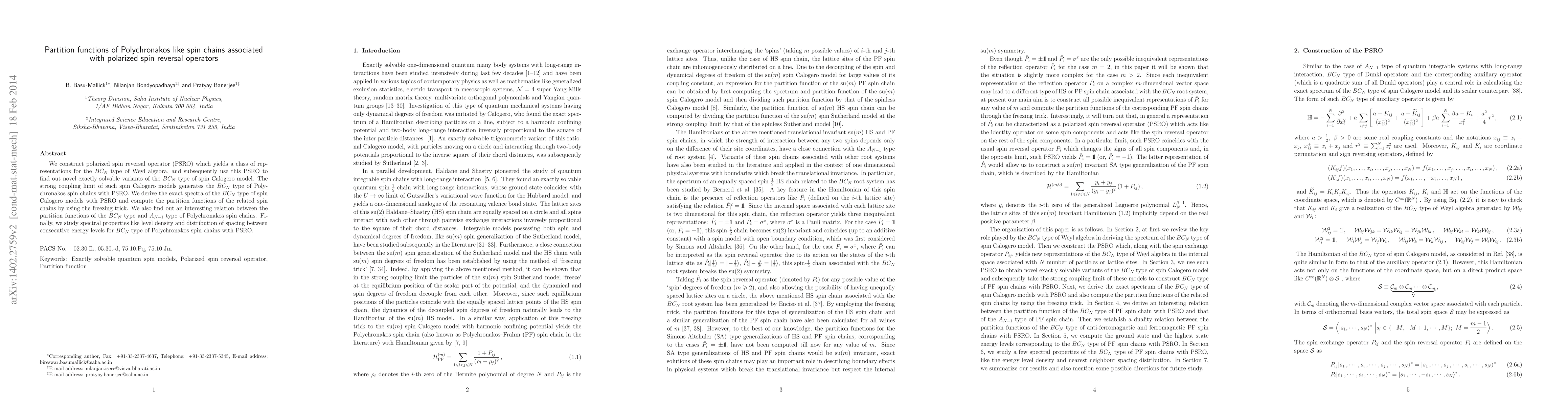 The paper constructs polarized spin reversal operators to derive novel solvable variants of $BC_N$ spin Calogero models, computes their partition functions, and finds a relation between $BC_N$ and $A_{N-1}$ type Polychronakos spin chains, also examining spectral properties.