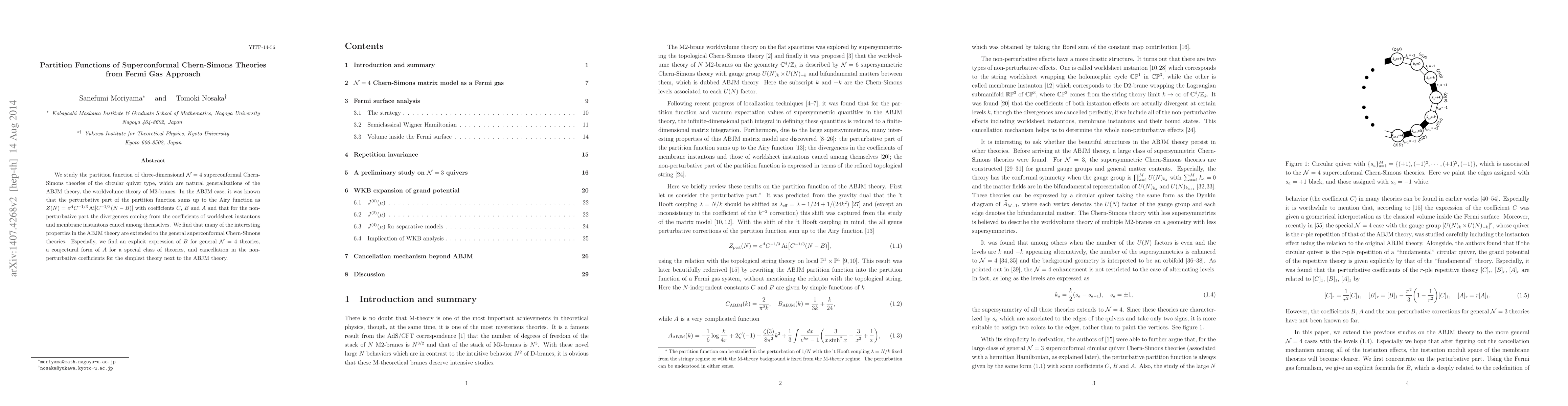 This paper investigates the partition functions of three-dimensional $\mathcal{N}=4$ superconformal Chern-Simons theories, extending findings from the ABJM theory. It reveals an explicit expression for the coefficient $B$ and a conjectural form for $A$ in these theories, alongside non-perturbative cancellation similar to the ABJM case.
