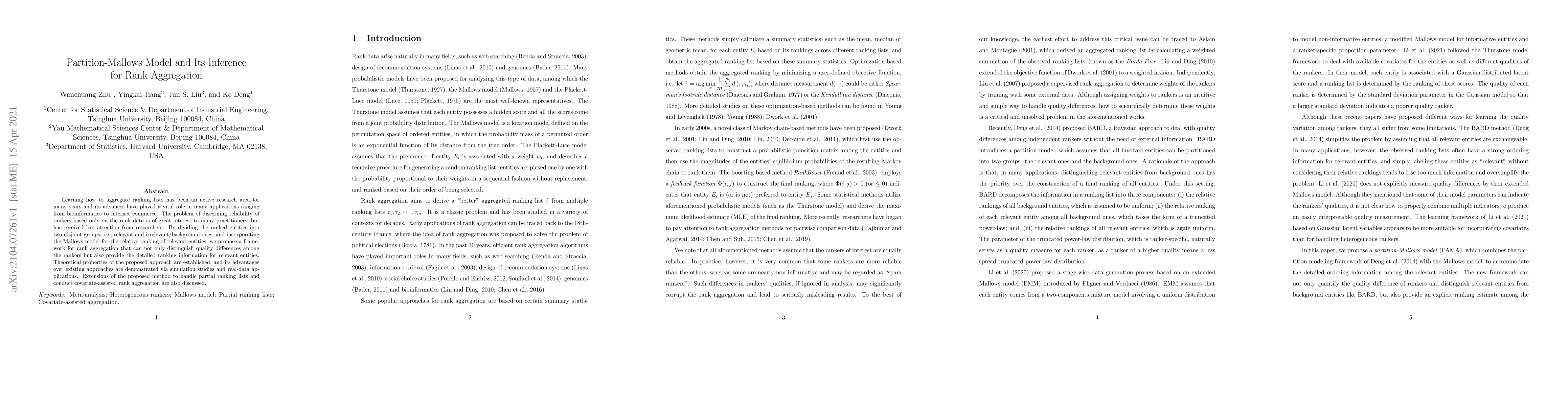 This paper proposes a Partition-Mallows Model for rank aggregation that distinguishes relevant and irrelevant entities, incorporating the Mallows model for ranking relevant entities. Theoretical properties and advantages over existing methods are demonstrated through simulations and real-data applications, with extensions for partial rankings and covariate-assisted aggregation.