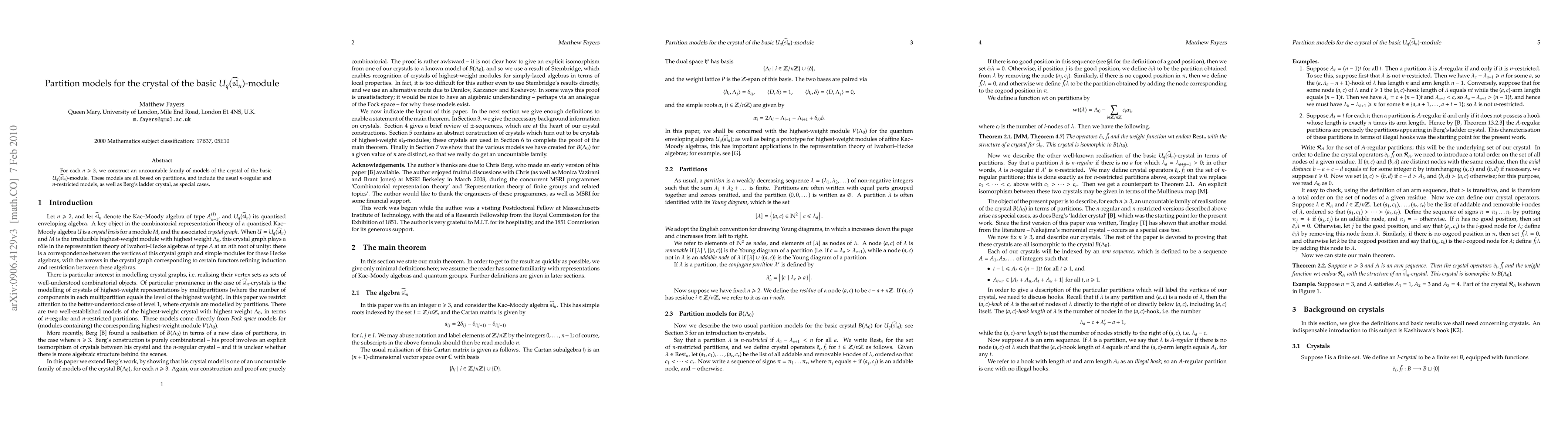 For each $n\geqslant3$, we construct an uncountable family of models of the crystal of the basic $U_q(\hat{\mathfrak{sl}}_n)$-module. These models are all based on partitions, and include the usual $n$-regular and $n$-restricted models, as well as Berg's ladder crystal, as special cases.