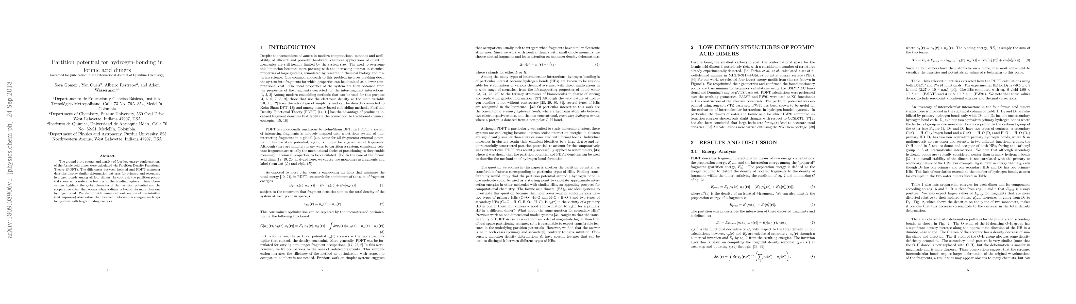 Researchers used a new method to study formic acid dimers, finding that hydrogen bonds have similar deformation patterns but no transferable features in the bonding region, suggesting a global character to the partition potential.