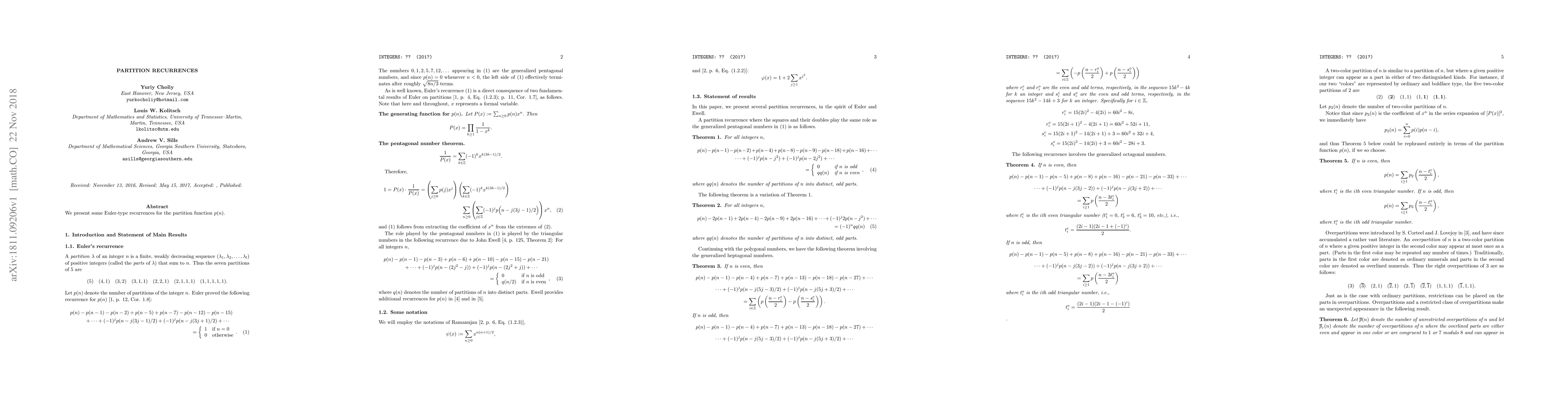 We present some Euler-type recurrences for the partition function $p(n)$.