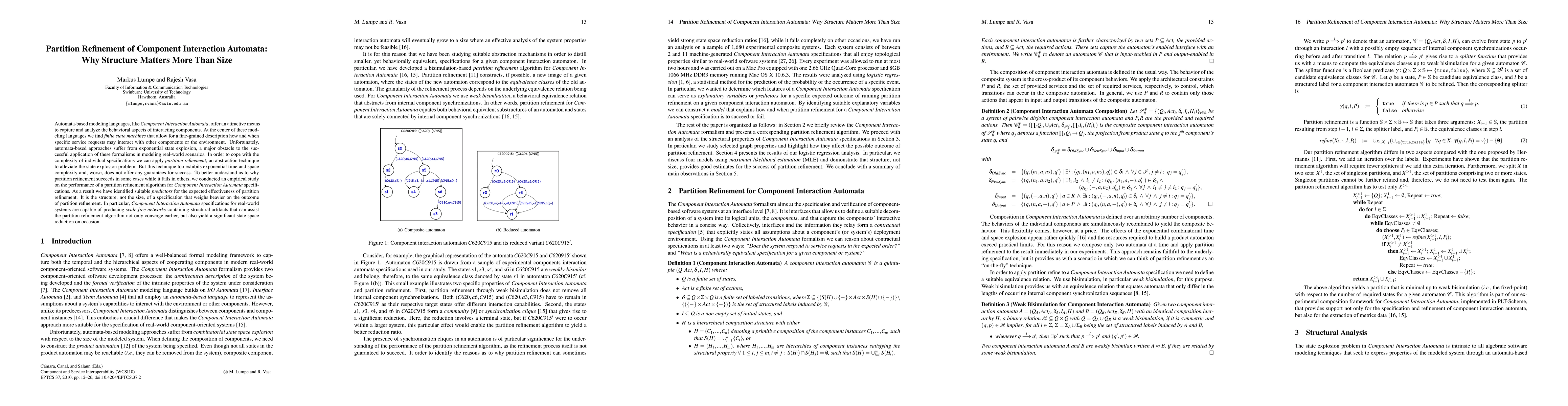 This paper investigates the effectiveness of partition refinement in managing state explosion in Component Interaction Automata, finding that structural properties of the specifications are more influential than their size. The study reveals that certain structural artifacts in real-world systems can significantly enhance the convergence and state space reduction of partition refinement algorithms.