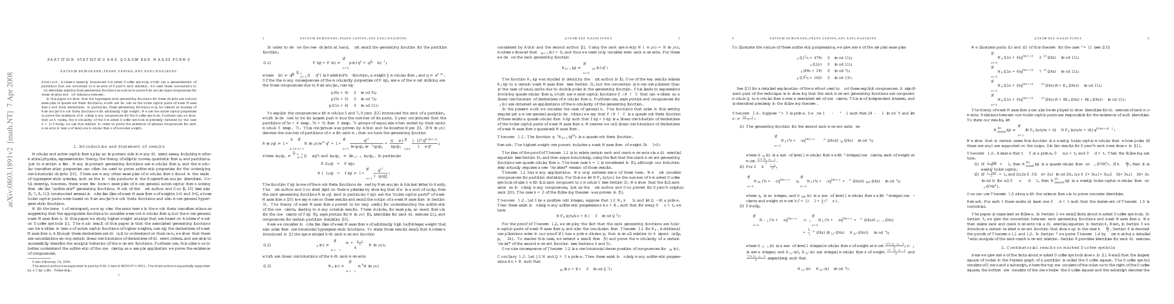Andrews recently introduced k-marked Durfee symbols, which are a generalization of partitions that are connected to moments of Dyson's rank statistic. He used these connections to find identities relating their generating functions as well as to prove Ramanujan-type congruences for these objects and find relations between. In this paper we show that the hypergeometric generating functions for these objects are natural examples of quasimock theta functions, which are defined as the holomorphic parts of weak Maass forms and their derivatives. In particular, these generating functions may be viewed as analogs of Ramanujan's mock theta functions with arbitrarily high weight. We use the automorphic properties to prove the existence of infinitely many congruences for the Durfee symbols. Furthermore, we show that as k varies, the modularity of the k-marked Durfee symbols is precisely dictated by the case k=2. Finally, we use this relation in order to prove the existence of general congruences for rank moments in terms of level one modular forms of bounded weight.