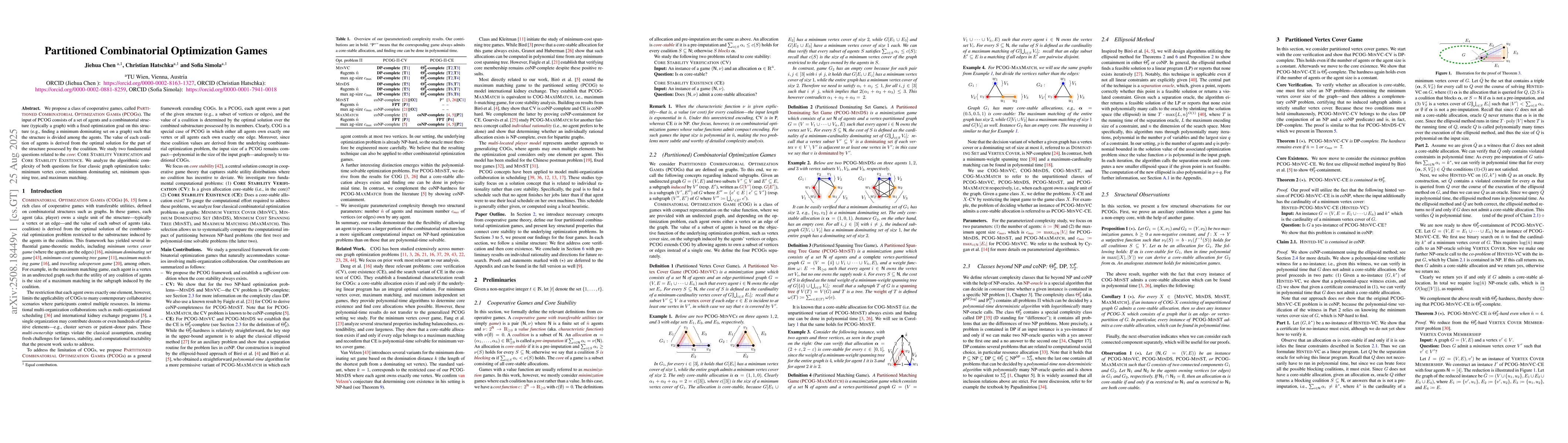 We propose a class of cooperative games, called d Partitioned Compbinatorial Optimization Games (PCOGs). The input of PCOG consists of a set of agents and a combinatorial structure (typically a graph) with a fixed optimization goal on this structure (e.g., finding a minimum dominating set on a graph) such that the structure is divided among the agents. The value of each coalition of agents is derived from the optimal solution for the part of the structure possessed by the coalition. We study two fundamental questions related to the core: Core Stability Verification and Core Stability Existence. We analyze the algorithmic complexity of both questions for four classic graph optimization tasks: minimum vertex cover, minimum dominating set, minimum spanning tree, and maximum matching.