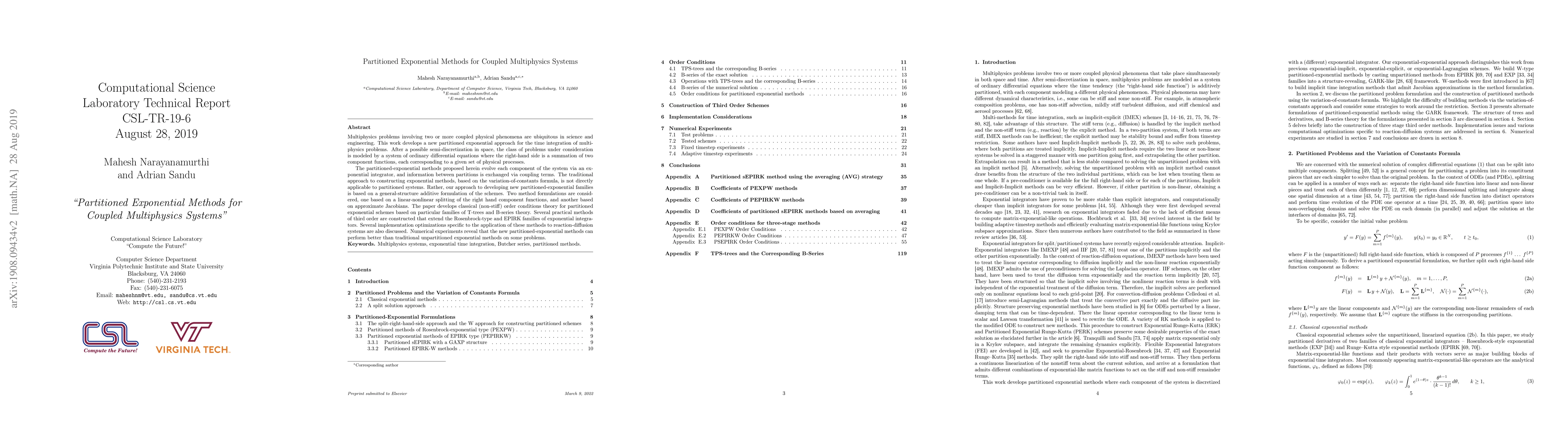 A new approach for solving coupled multiphysics systems using partitioned exponential methods is developed, offering improved performance compared to traditional unpartitioned methods in certain cases.