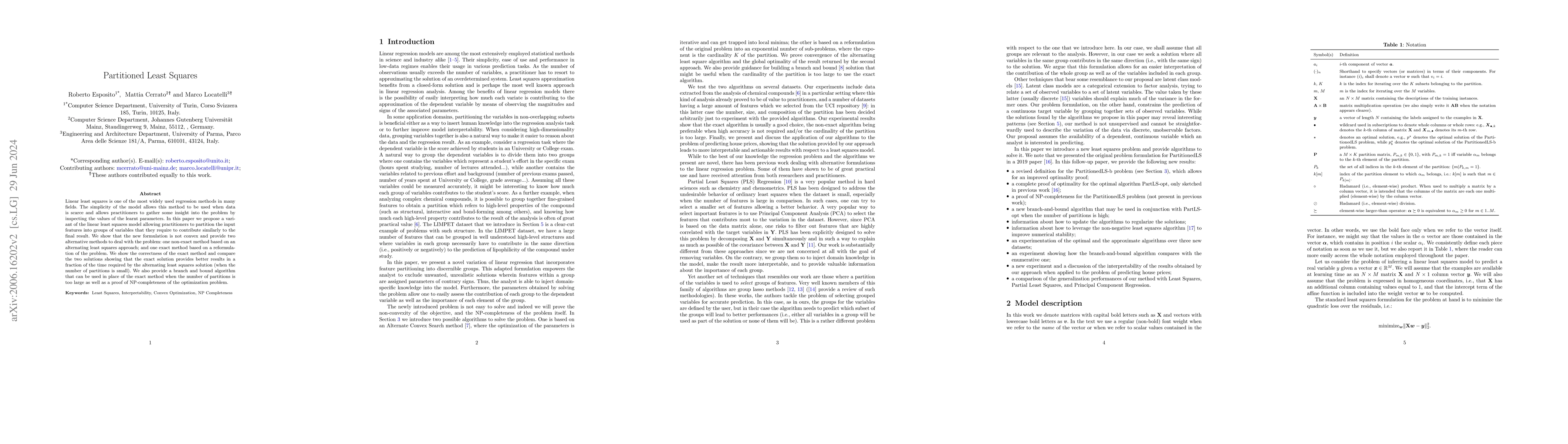 Researchers propose a new method for linear least squares that allows users to partition input features into groups, enabling them to assess variable importance and optimize results. The exact method offers better results in less time than alternative approaches, while a branch and bound algorithm provides an alternative solution for large numbers of partitions.