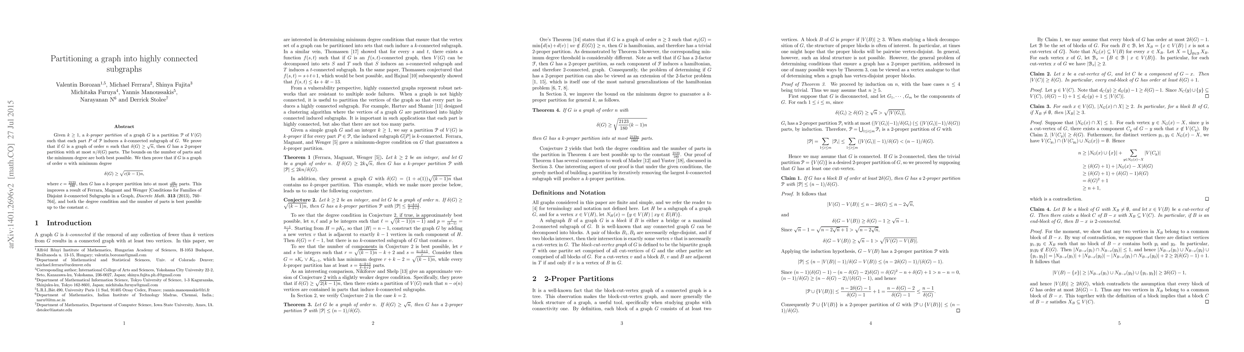 Given $k\ge 1$, a $k$-proper partition of a graph $G$ is a partition ${\mathcal P}$ of $V(G)$ such that each part $P$ of ${\mathcal P}$ induces a $k$-connected subgraph of $G$. We prove that if $G$ is a graph of order $n$ such that $\delta(G)\ge \sqrt{n}$, then $G$ has a $2$-proper partition with at most $n/\delta(G)$ parts. The bounds on the number of parts and the minimum degree are both best possible. We then prove that If $G$ is a graph of order $n$ with minimum degree $\delta(G)\ge\sqrt{c(k-1)n}$, where $c=\frac{2123}{180}$, then $G$ has a $k$-proper partition into at most $\frac{cn}{\delta(G)}$ parts. This improves a result of Ferrara, Magnant and Wenger [Conditions for Families of Disjoint $k$-connected Subgraphs in a Graph, Discrete Math. 313 (2013), 760--764] and both the degree condition and the number of parts are best possible up to the constant $c$.