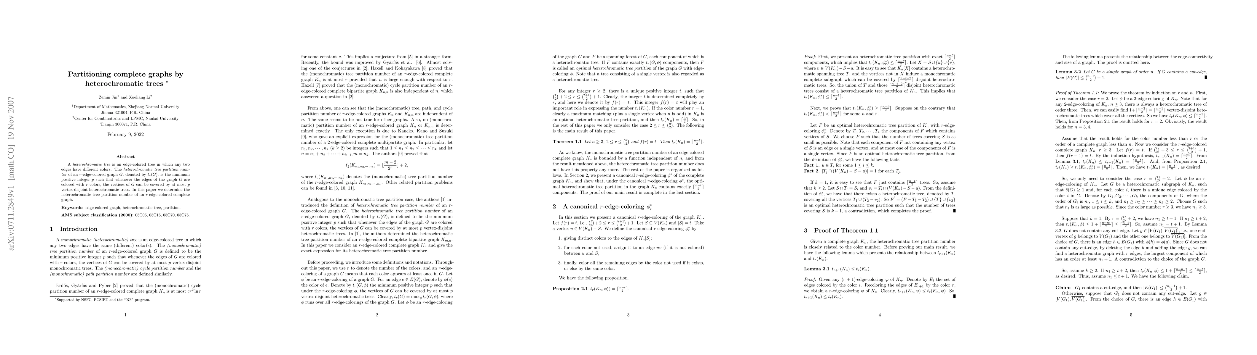 This paper investigates the minimum number of vertex-disjoint heterochromatic trees required to cover an $r$-edge-colored complete graph, defining a new concept called heterochromatic tree partition number, $t_r(G)$. The authors determine the exact value of $t_r$ for such complete graphs.