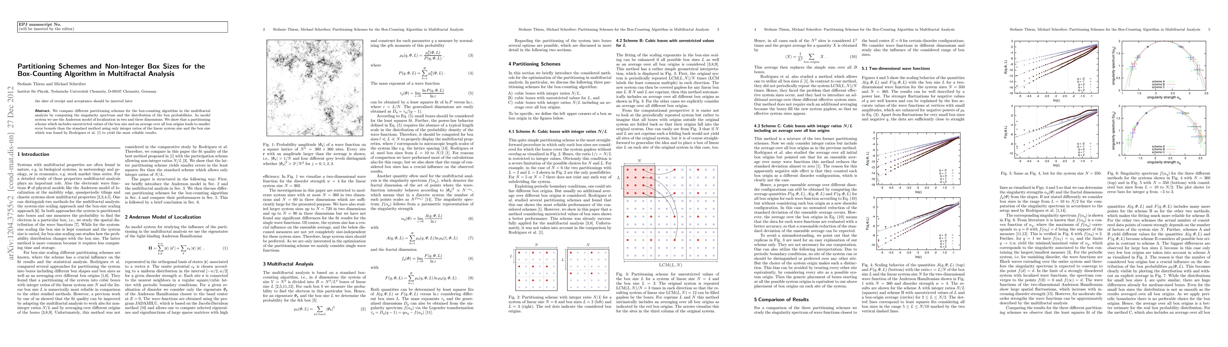 We compare different partitioning schemes for the box-counting algorithm in the multifractal analysis by computing the singularity spectrum and the distribution of the box probabilities. As model system we use the Anderson model of localization in two and three dimensions. We show that a partitioning scheme which includes unrestricted values of the box size and an average over all box origins leads to smaller error bounds than the standard method using only integer ratios of the linear system size and the box size which was found by Rodriguez et al. (Eur. Phys. J. B 67, 77-82 (2009)) to yield the most reliable results.