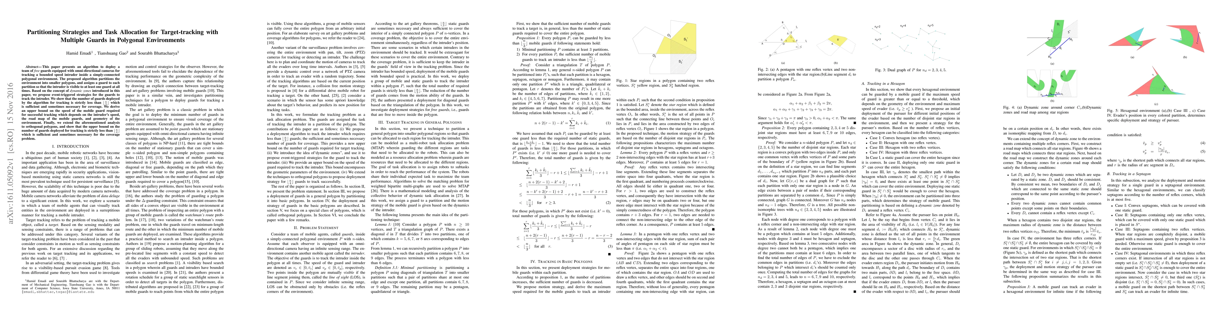 This research introduces an algorithm for deploying mobile guards with cameras to track a moving target within a polygonal area. The method partitions the environment and assigns guards to ensure continuous target visibility, requiring fewer guards than previously thought necessary. It also establishes upper limits on guard speed based on intruder speed and environment geometry, applicable to both general and orthogonal polygons.