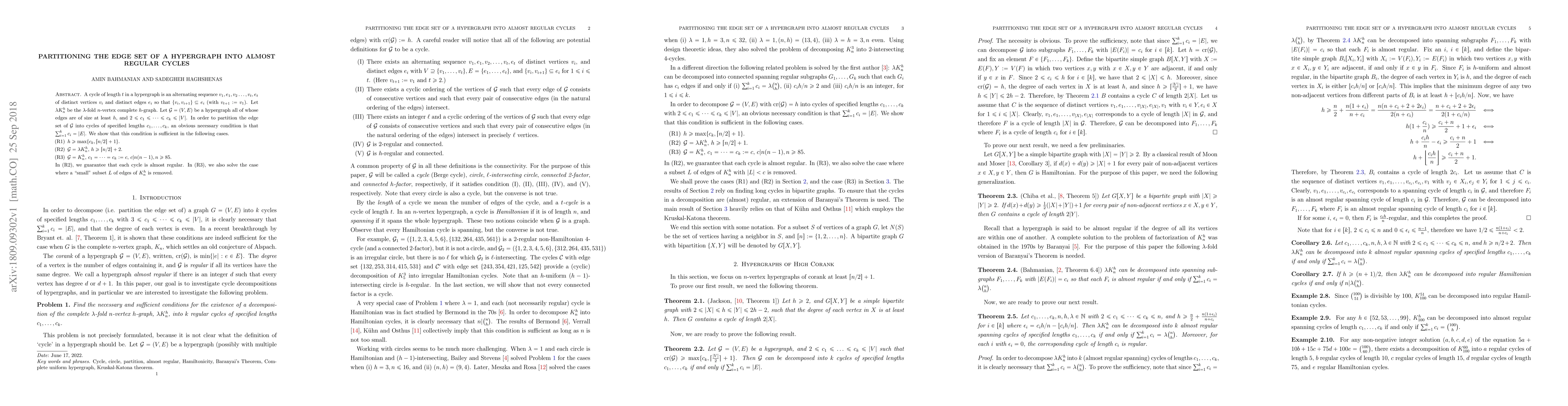 A cycle of length $t$ in a hypergraph is an alternating sequence $v_1,e_1,v_2\dots,v_t,e_t$ of distinct vertices $v_i$ and distinct edges $e_i$ so that $\{v_i,v_{i+1}\}\subseteq e_i$ (with $v_{t+1}:=v_1$). Let $\lambda K_n^h$ be the $\lambda$-fold $n$-vertex complete $h$-graph. Let $\mathcal G=(V,E)$ be a hypergraph all of whose edges are of size at least $h$, and $2\leq c_1\leq \dots\leq c_k\leq |V|$. In order to partition the edge set of $\mathcal G$ into cycles of specified lengths $c_1, \dots, c_k$, an obvious necessary condition is that $\sum_{i=1}^k c_i=|E|$. We show that this condition is sufficient in the following cases: (i) $h\geq \max\{c_k, \lceil n/2 \rceil+1\}$; (ii) $\mathcal G=\lambda K_n^h$, $h\geq \lceil n/2 \rceil+2$; (iii) $\mathcal G=K_n^h$, $c_1= \dots=c_k:=c$, $c|n(n-1), n\geq 85$. In (ii), we guarantee that each cycle is almost regular. In (iii), we also solve the case where a "small" subset $L$ of edges of $K_n^h$ is removed.