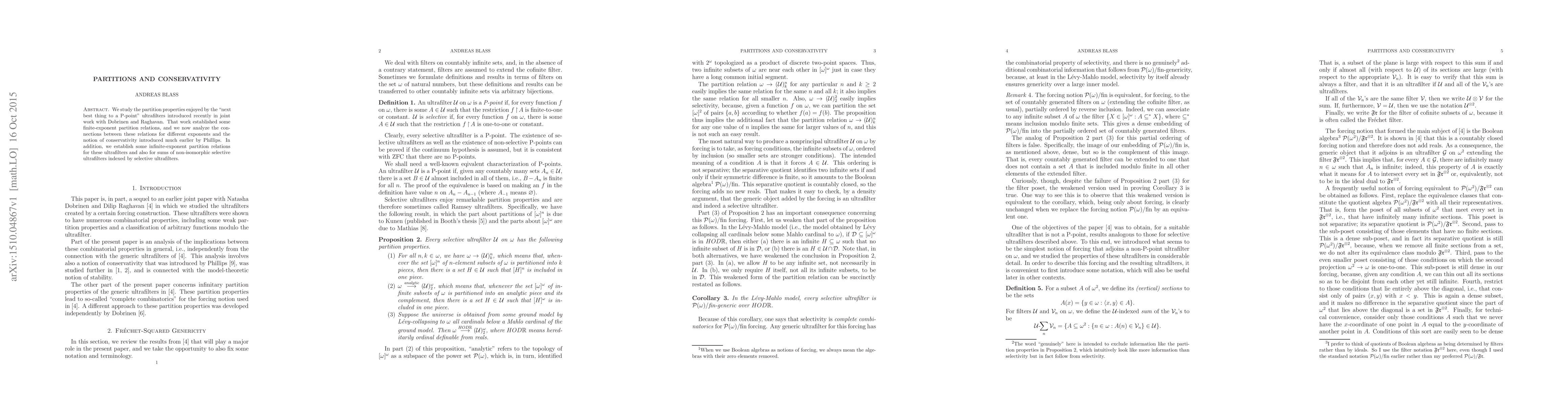 We study the partition properties enjoyed by the "next best thing to a P-point'' ultrafilters introduced recently in joint work with Dobrinen and Raghavan. That work established some finite-exponent partition relations, and we now analyze the connections between these relations for different exponents and the notion of conservativity introduced much earlier by Phillips. In addition, we establish some infinite-exponent partition relations for these ultrafilters and also for sums of non-isomorphic selective ultrafilters indexed by selective ultrafilters.