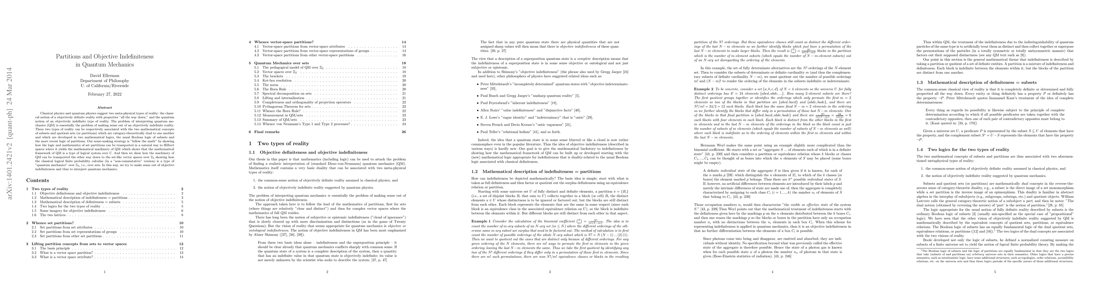 Classical physics and quantum physics suggest two meta-physical types of reality: the classical notion of a objectively definite reality with properties "all the way down," and the quantum notion of an objectively indefinite type of reality. The problem of interpreting quantum mechanics (QM) is essentially the problem of making sense out of an objectively indefinite reality. These two types of reality can be respectively associated with the two mathematical concepts of subsets and quotient sets (or partitions) which are category-theoretically dual to one another and which are developed in two mathematical logics, the usual Boolean logic of subsets and the more recent logic of partitions. Our sense-making strategy is "follow the math" by showing how the logic and mathematics of set partitions can be transported in a natural way to Hilbert spaces where it yields the mathematical machinery of QM--which shows that the mathematical framework of QM is a type of logical system over the complex numbers. And then we show how the machinery of QM can be transported the other way down to the set-like vector spaces over Z_2 showing how the classical logical finite probability calculus (in a "non-commutative" version) is a type of "quantum mechanics" over Z_2, i.e., over sets. In this way, we try to make sense out of objective indefiniteness and thus to interpret quantum mechanics.