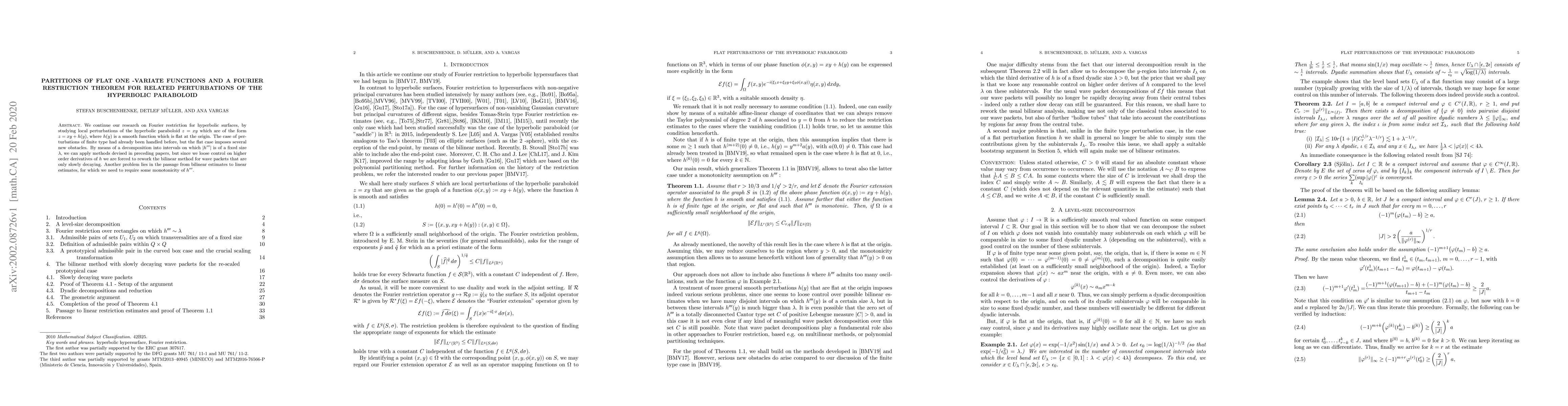 This paper investigates Fourier restriction for hyperbolic surfaces, focusing on local perturbations of the hyperbolic paraboloid $z=xy$ of the form $z=xy+h(y)$, where $h(y)$ is a smooth function flat at the origin. The authors decompose $h$ into intervals based on the size of $|h'''|$, adapting previous methods to handle the new challenges posed by the flatness condition.