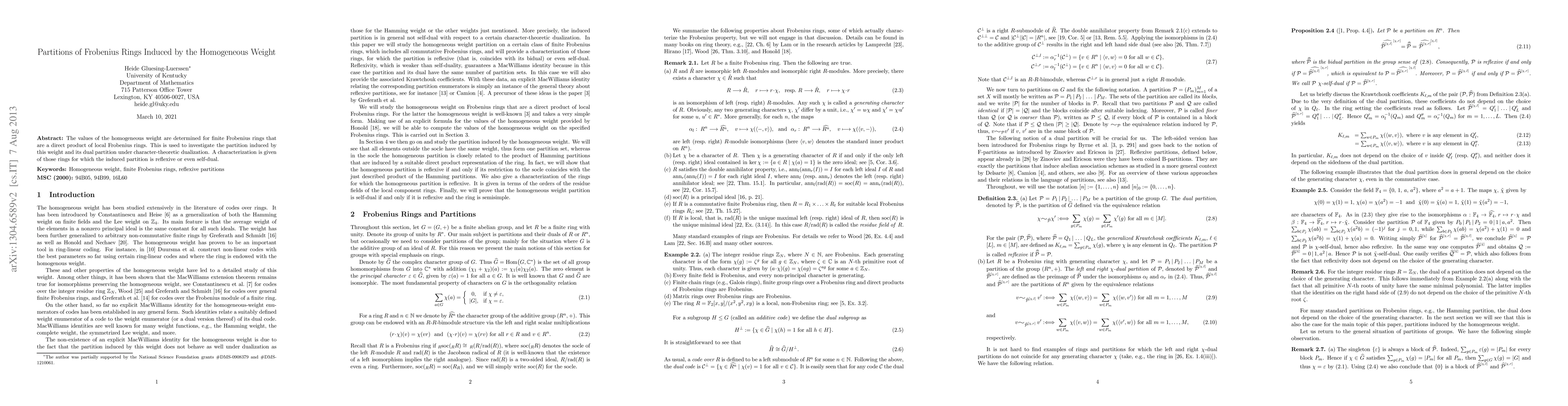 The values of the homogeneous weight are determined for finite Frobenius rings that are a direct product of local Frobenius rings. This is used to investigate the partition induced by this weight and its dual partition under character-theoretic dualization. A characterization is given of those rings for which the induced partition is reflexive or even self-dual.
