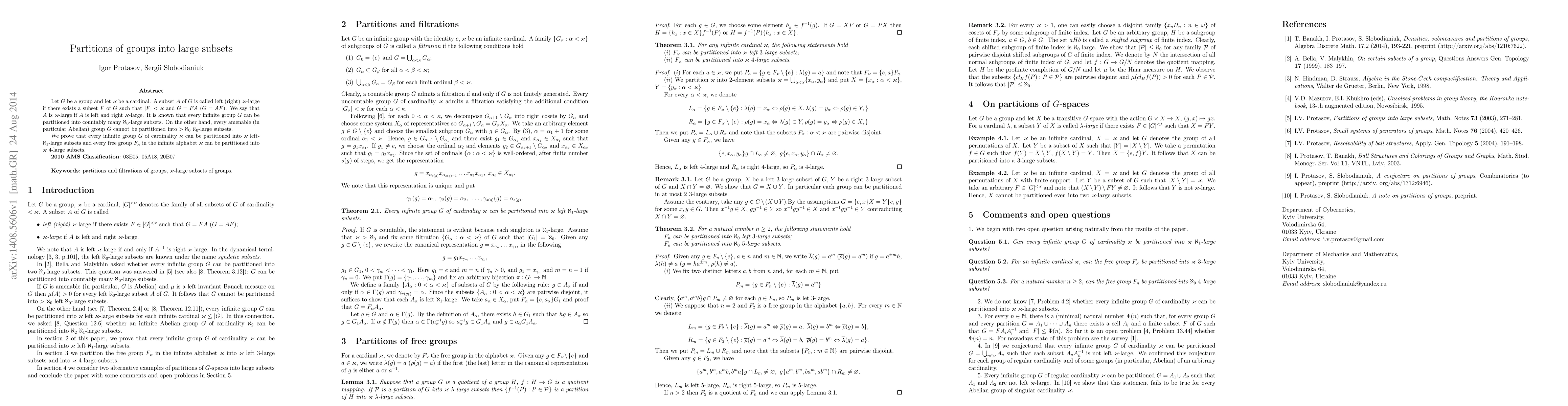 Every infinite group of cardinality k can be partitioned into k subsets, each left-\u03b1-large or right-\u03b1-large, and certain free groups can be partitioned into subsets that are 4-large.