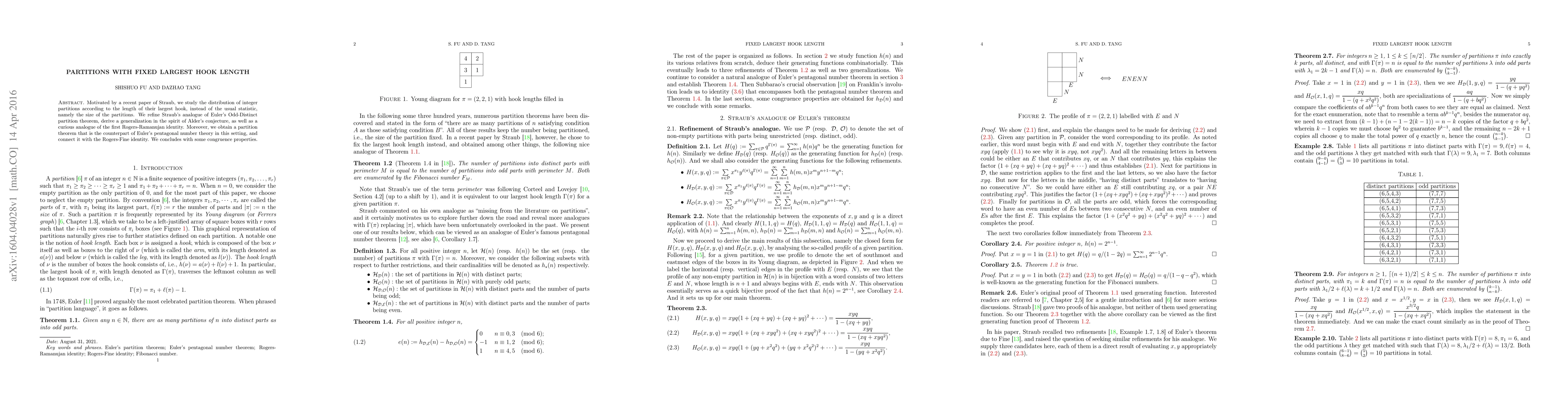 Researchers study partitions of integers based on their largest hook length, refining a theorem and generalizing another, while connecting it to several identities and congruence properties.