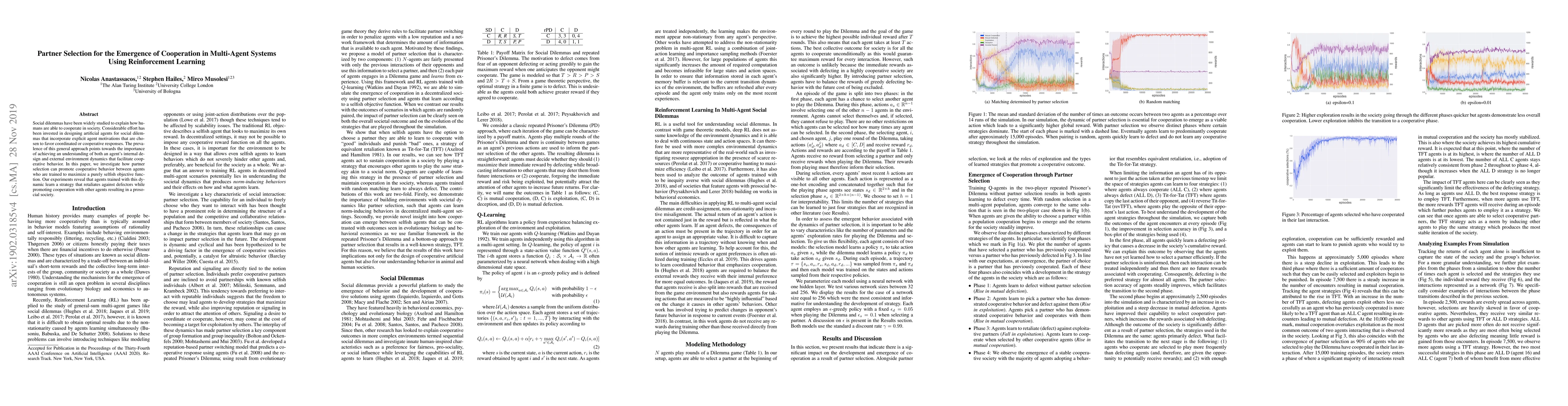 This paper explores how partner selection in multi-agent systems using reinforcement learning can foster cooperation among agents with selfish objectives. The study finds that agents dynamically trained to retaliate against defectors while cooperating with others can develop a prosocial society.