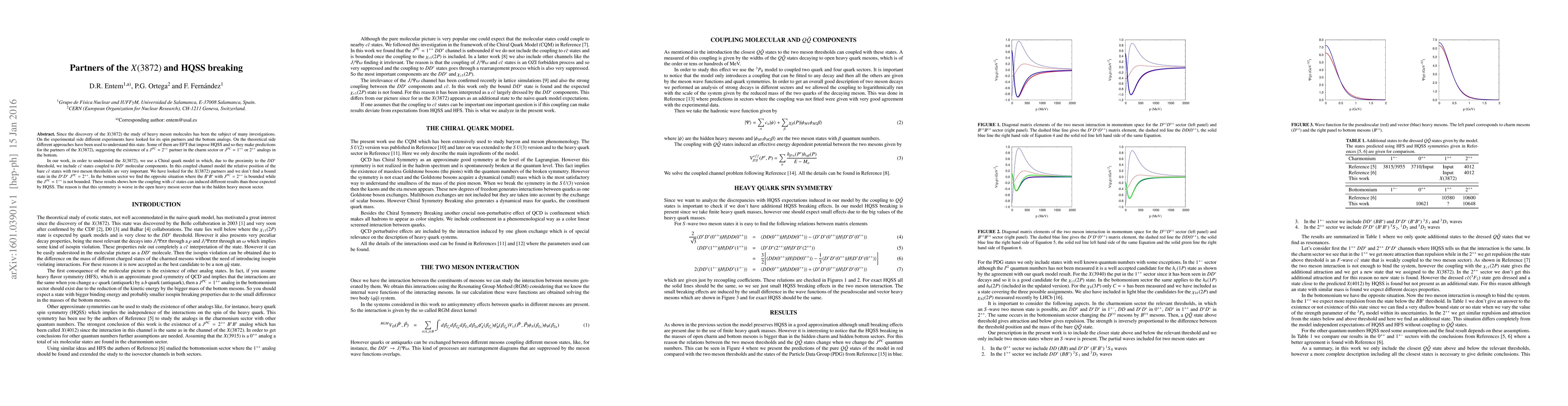 Since the discovery of the $X(3872)$ the study of heavy meson molecules has been the subject of many investigations. On the experimental side different experiments have looked for its spin partners and the bottom analogs. On the theoretical side different approaches have been used to understand this state. Some of them are EFT that impose HQSS and so they make predictions for the partners of the $X(3872)$, suggesting the existence of a $J^{PC}=2^{++}$ partner in the charm sector or $J^{PC}=1^{++}$ or $2^{++}$ analogs in the bottom. In our work, in order to understand the $X(3872)$, we use a Chiral quark model in which, due to the proximity to the $DD^*$ threshold, we include $c\bar c$ states coupled to $DD^*$ molecular components. In this coupled channel model the relative position of the bare $c\bar c$ states with two meson thresholds are very important. We have looked for the $X(3872)$ partners and we don't find a bound state in the $D^*D^*$ $J^{PC}=2^{++}$. In the bottom sector we find the opposite situation where the $B^*B^*$ with $J^{PC}=2^{++}$ is bounded while the $J^{PC}=1^{++}$ is not bounded. These results shows how the coupling with $c\bar c$ states can induced different results than those expected by HQSS. The reason is that this symmetry is worse in the open heavy meson sector than in the hidden heavy meson sector.