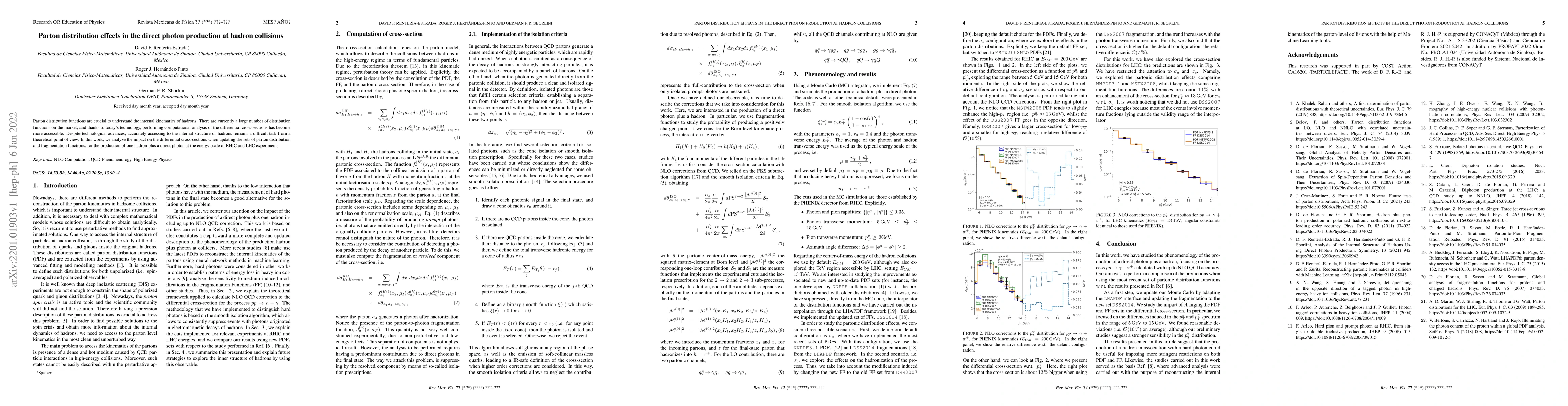 Parton distribution functions are crucial to understand the internal kinematics of hadrons. There are currently a large number of distribution functions on the market, and thanks to today's technology, performing computational analysis of the differential cross-sections has become more accessible. Despite technological advances, accurately accessing to the internal structure of hadrons remains a difficult task from a theoretical point of view. In this work, we analyze the impact on the differential cross-sections when updating the sets of parton distribution and fragmentation functions, for the production of one hadron plus a direct photon at the energy scale of RHIC and LHC experiments.
