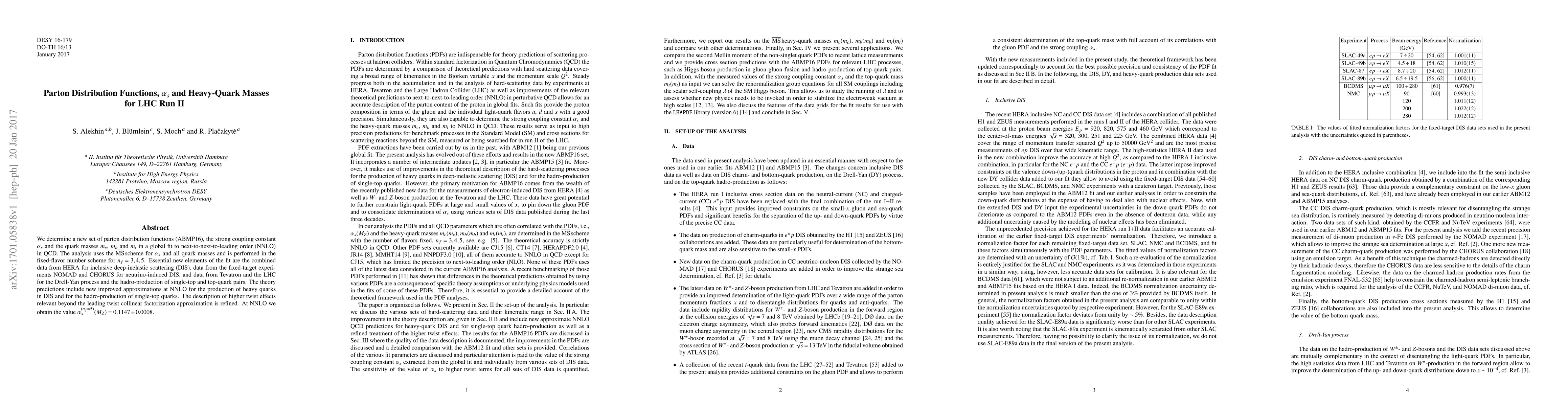 This paper presents a new set of parton distribution functions (ABMP16) and determines the strong coupling constant $\alpha_s$ and heavy-quark masses at LHC Run II, using a global fit to next-to-next-to-leading order (NNLO) QCD, incorporating diverse experimental data and refined theoretical predictions. The result for $\alpha_s$ at $M_Z$ is $\alpha_s^{(n_f=5)}(M_Z) = 0.1147 \pm 0.0008$.
