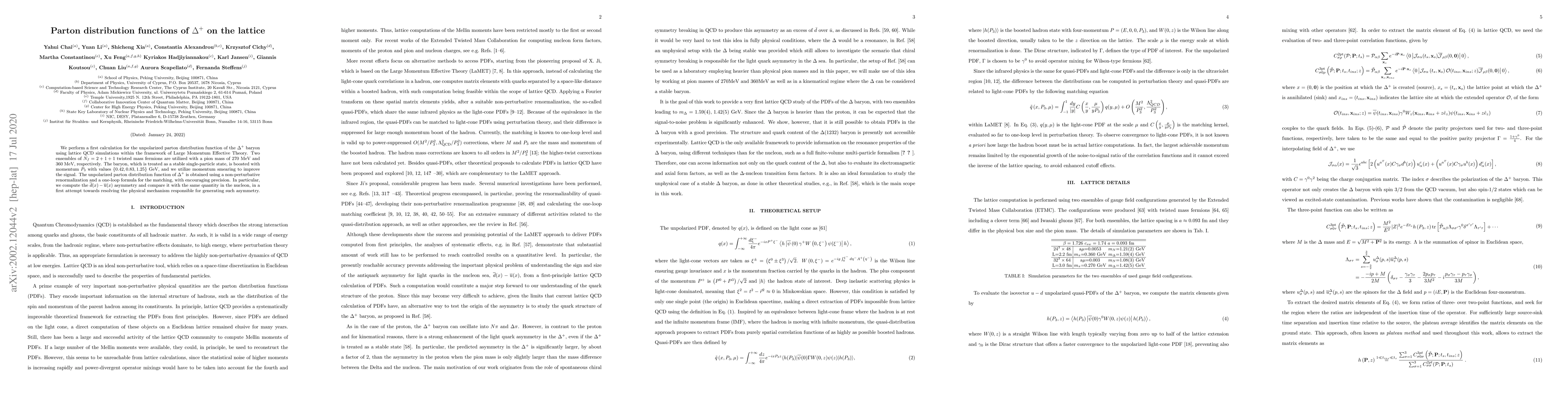 This research paper calculates the parton distribution function of the baryon Delta+ using lattice QCD simulations, with encouraging precision in obtaining key quantities like the d-quark asymmetry.