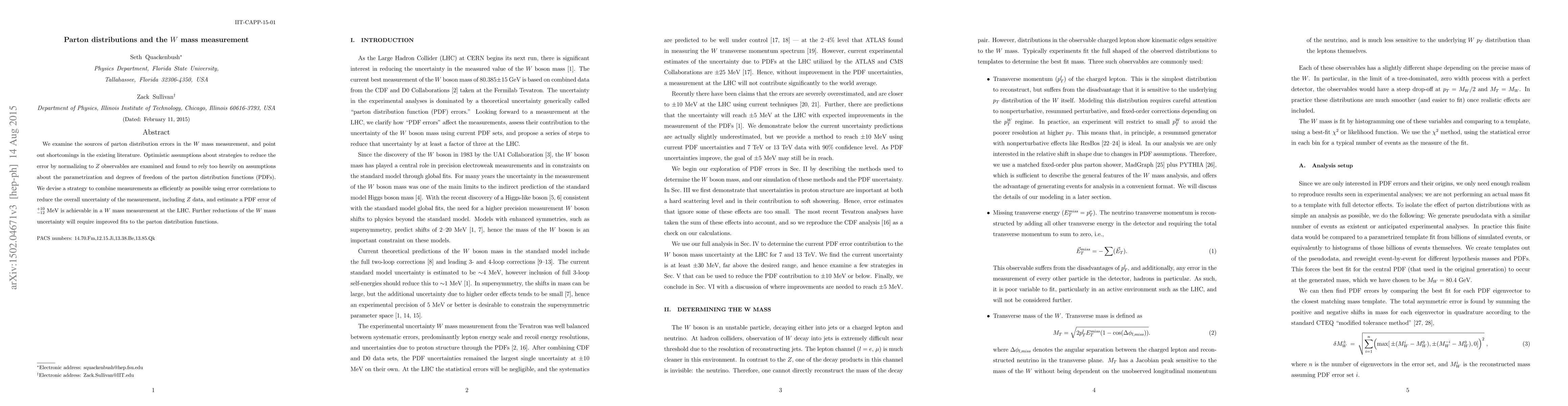 This paper investigates the parton distribution errors affecting the $W$ mass measurement, highlighting flaws in current literature. It proposes a strategy to optimally combine measurements using error correlations, achieving a PDF error of $^{+10}_{-12}$ MeV, and suggests that further reductions in $W$ mass uncertainty depend on better fits to parton distribution functions.