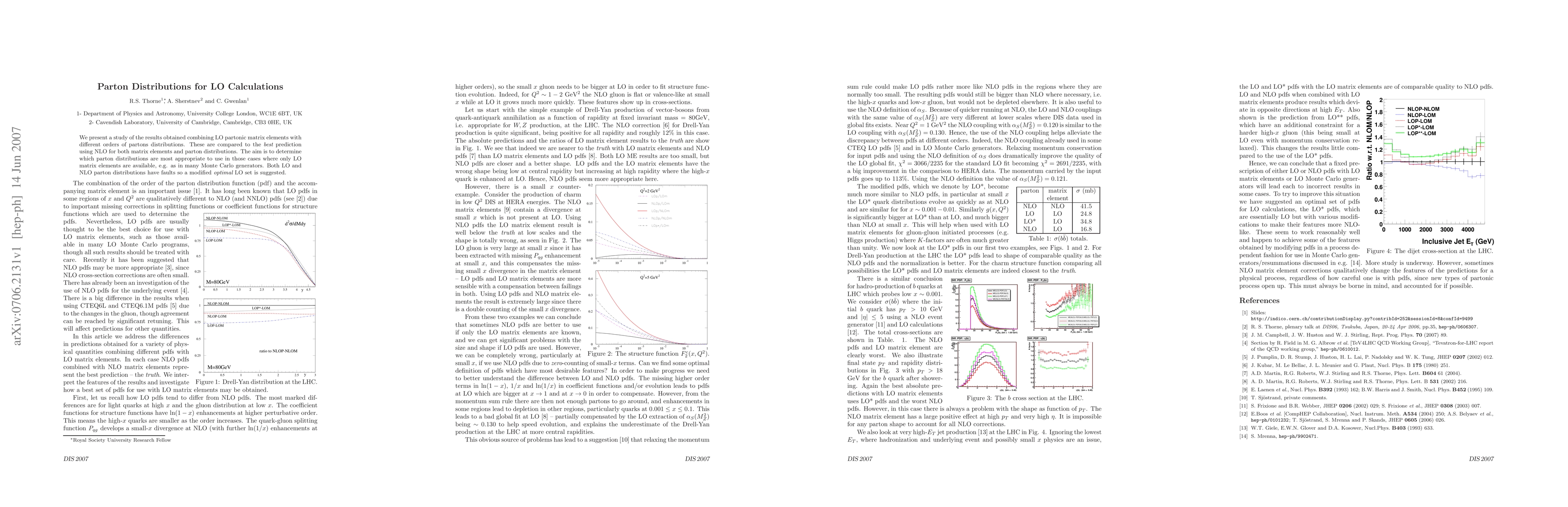 We present a study of the results obtained combining LO partonic matrix elements with different orders of partons distributions. These are compared to the best prediction using NLO for both matrix elements and parton distributions. The aim is to determine which parton distributions are most appropriate to use in those cases where only LO matrix elements are available, e.g. as in many Monte Carlo generators. Both LO and NLO parton distributions have faults so a modified optimal LO set is suggested.