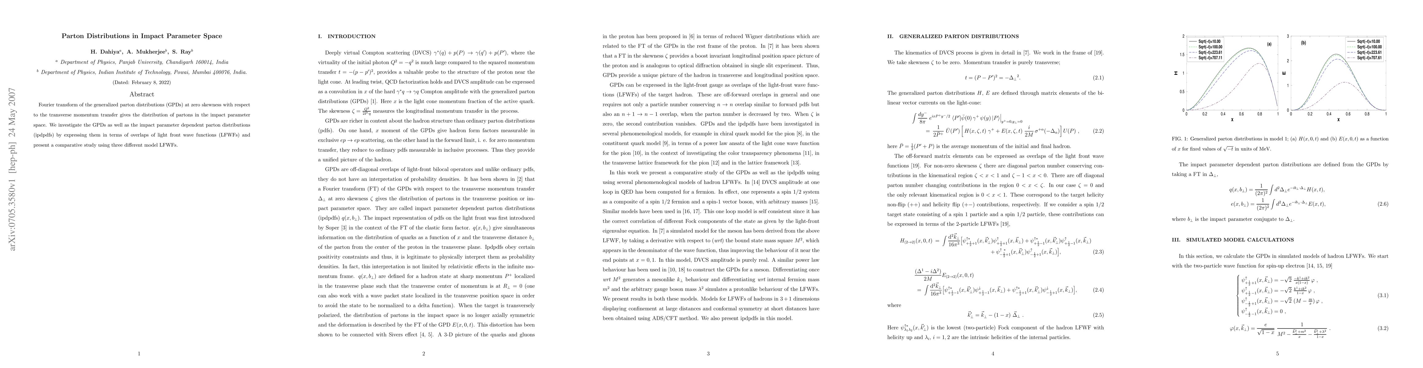 This paper explores the Fourier transform of generalized parton distributions to derive parton distributions in impact parameter space, comparing results from three different models of light front wave functions. The study aims to understand the relationship between GPDs and impact parameter dependent parton distributions.