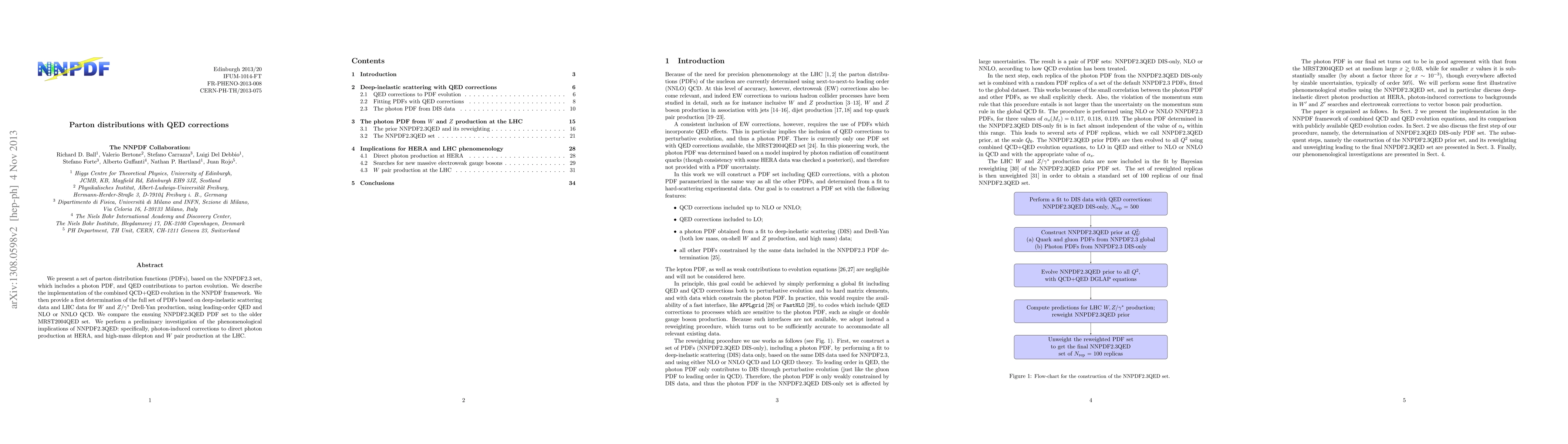 We present a set of parton distribution functions (PDFs), based on the NNPDF2.3 set, which includes a photon PDF, and QED contributions to parton evolution. We describe the implementation of the combined QCD+QED evolution in the NNPDF framework. We then provide a first determination of the full set of PDFs based on deep-inelastic scattering data and LHC data for W and Z/gamma* Drell-Yan production, using leading-order QED and NLO or NNLO QCD. We compare the ensuing NNPDF2.3QED PDF set to the older MRST2004QED set. We perform a preliminary investigation of the phenomenological implications of NNPDF2.3QED: specifically, photon-induced corrections to direct photon production at HERA, and high-mass dilepton and W pair production at the LHC.