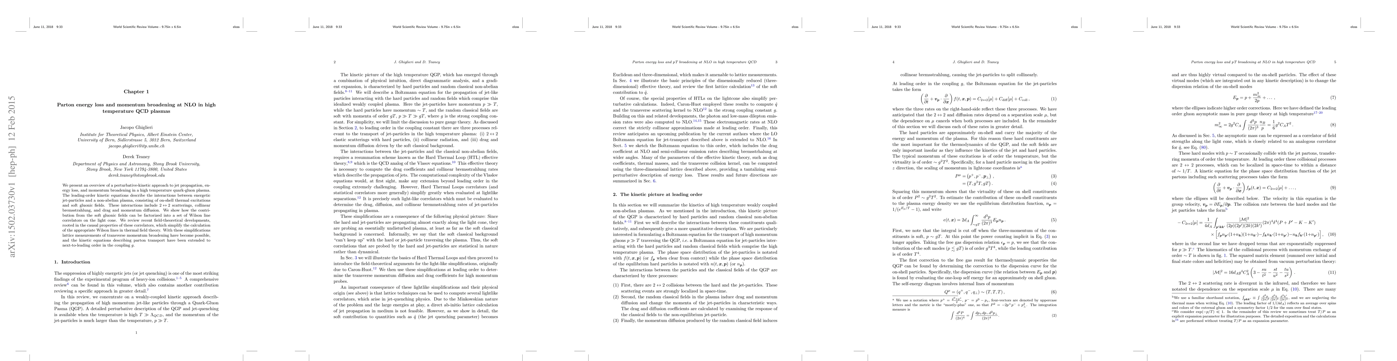 This paper reviews a perturbative-kinetic approach to jet propagation, energy loss, and momentum broadening in high-temperature quark-gluon plasmas, extending the kinetic equations to next-to-leading order and factorizing contributions from soft gluonic fields into Wilson line correlators. Recent developments simplify the calculation of these correlators, enabling lattice measurements of transverse momentum broadening.