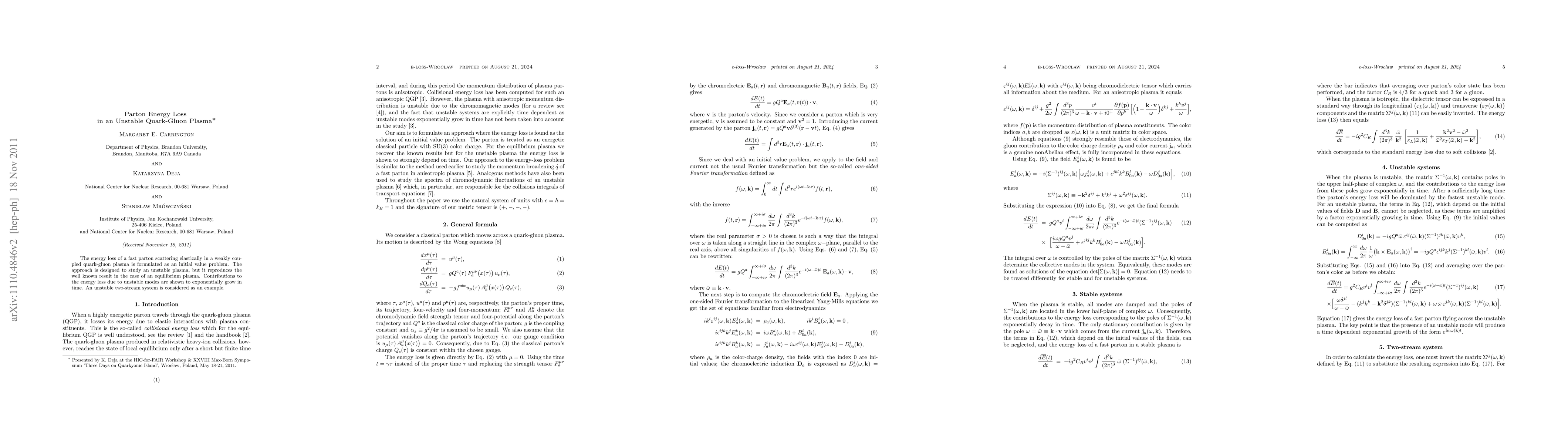 This work introduces a novel approach to understanding the behavior of fast partons in unstable plasmas.