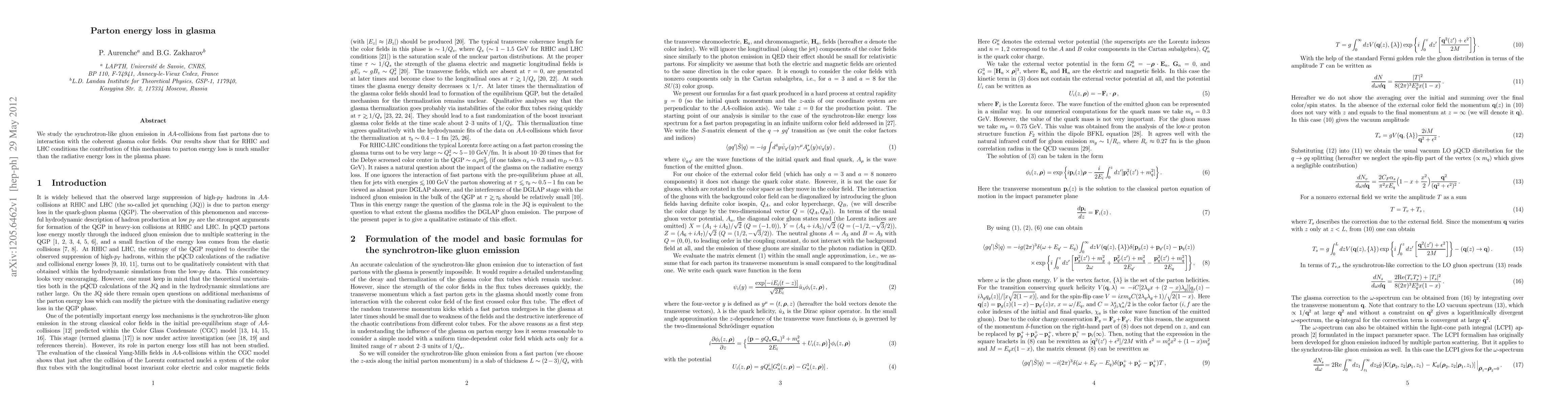 Summary: This paper investigates synchrotron-like gluon emission in heavy-ion collisions, finding that the interaction-induced energy loss from coherent glasma fields is significantly less than the radiative energy loss in the plasma phase at RHIC and LHC energies.
