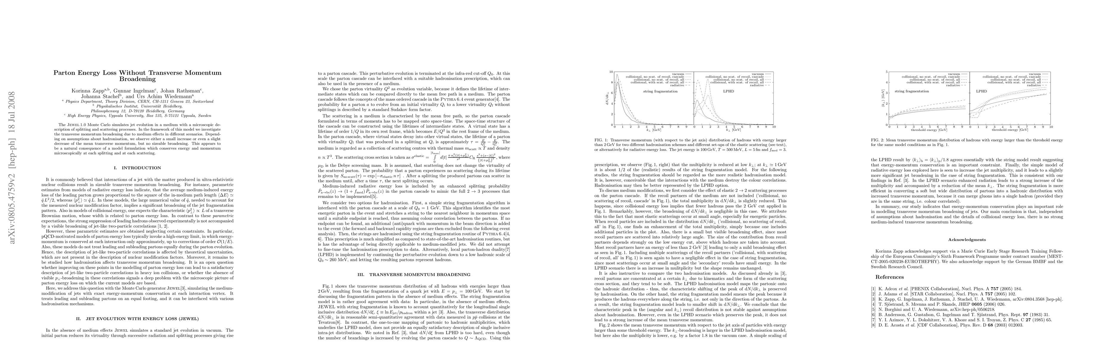The JEWEL 1.0 Monte Carlo model simulates jet evolution in a medium, revealing that despite medium effects, there is no significant transverse momentum broadening due to a formulation that conserves energy and momentum at each splitting and scattering, leading to minimal or even slight changes in mean transverse momentum.