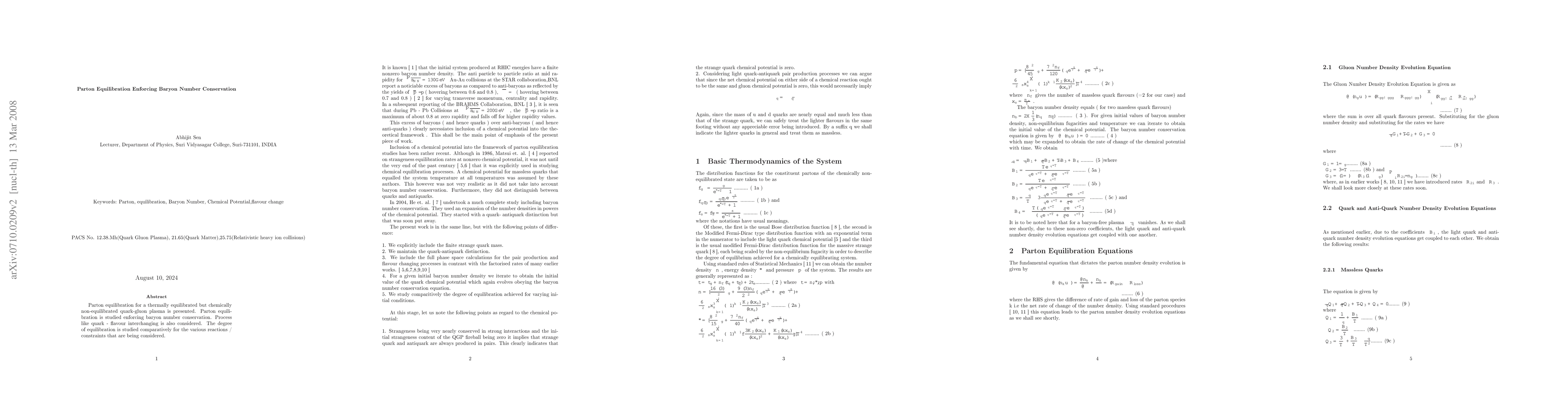 This paper investigates parton equilibration in a quark-gluon plasma while enforcing baryon number conservation, examining processes like quark flavor interchange. The study compares the degree of equilibration under various reactions and constraints.
