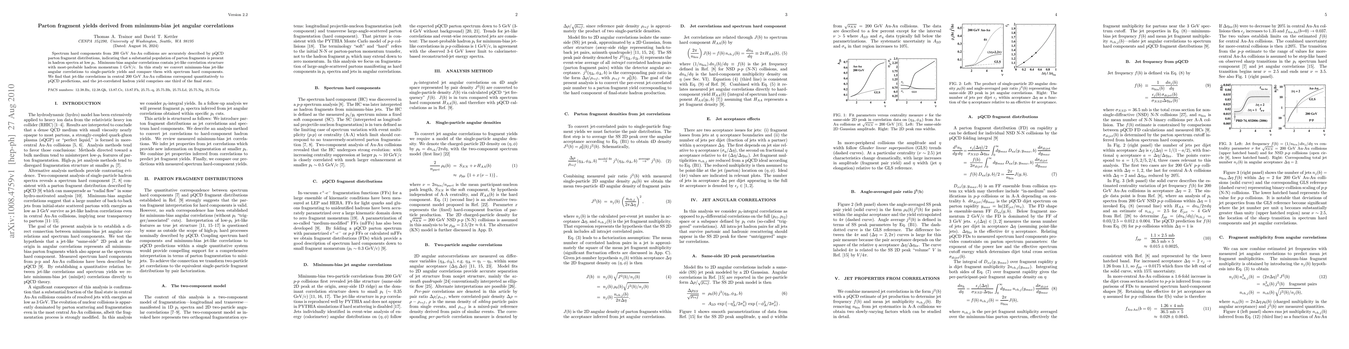 This study investigates parton fragment yields from minimum-bias jet angular correlations in 200 GeV \auau collisions, finding that these correlations align quantitatively with pQCD predictions. The jet-correlated hadron yield constitutes one third of the final state, indicating a substantial low $p_t$ parton fragment population.