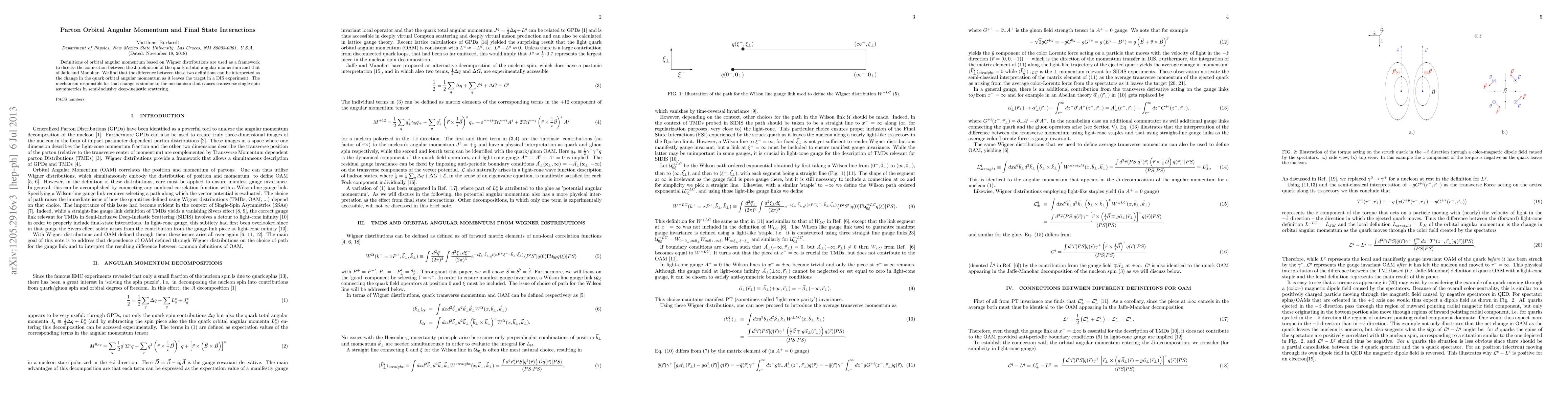 This paper explores the connection between different definitions of quark orbital angular momentum using Wigner distributions, revealing that the difference between the Ji and Jaffe-Manohar definitions reflects the change in orbital angular momentum during the quark's exit from the target in deep-inelastic scattering, akin to the mechanism behind transverse single-spin asymmetries.